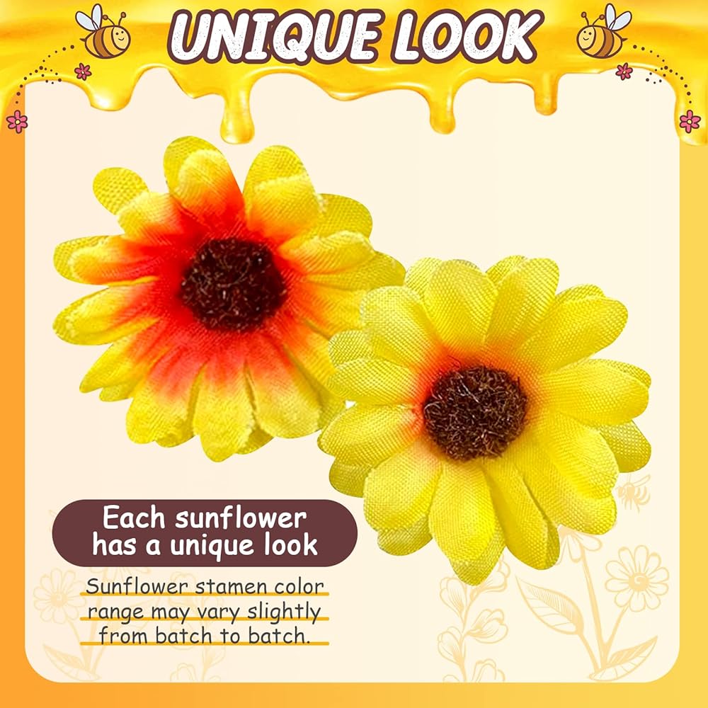 مادة موثوقة: مجوهرات بامبلبي مصنوعة من الراتنج الصغير وخفيف الوزن ومتين. لا يبهت بسهولة ويمكن غسله. عباد الشمس الاصطناعي مصنوع من زهور حريرية عالية الجودة وبلاستيك، تصميم ملون وواقعي.