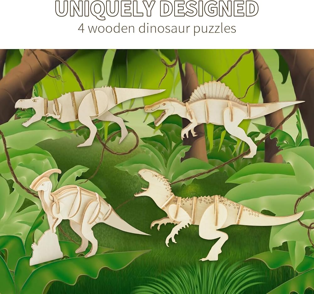 【مجموعة ألغاز من 4 قطع】تتضمن هذه المجموعة: باراصورولوفوس، سبينوصور، تيرانيكال رابتور وتيرانوصور ريكس. لا حاجة لأي أدوات أو غراء لصنع ألغاز الديناصورات هذه!