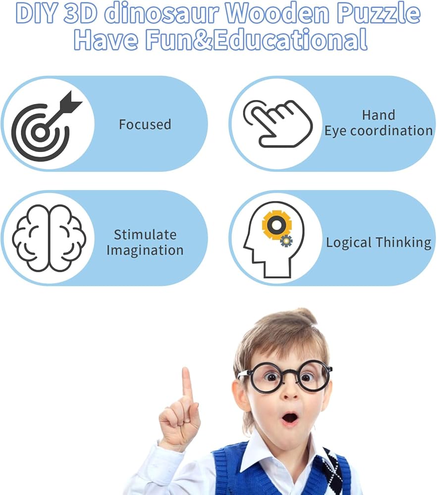 【لعبة تعليمية】: هذه لعبة تفاعلية للأطفال والكبار، عملية التجميع تحفز قدرتك على التفكير وقدرتك على التفكير المنطقي والإبداع، وتوجيه طفلك بصبر للتجميع، ويمكن أيضًا تحسين انتباه طفلك. يمكنك تلوين الديناصورات الخشبية ولوحة الصور الخلفية بنفسك. اللغز الخشبي لا يتطلب أي أدوات أو غراء