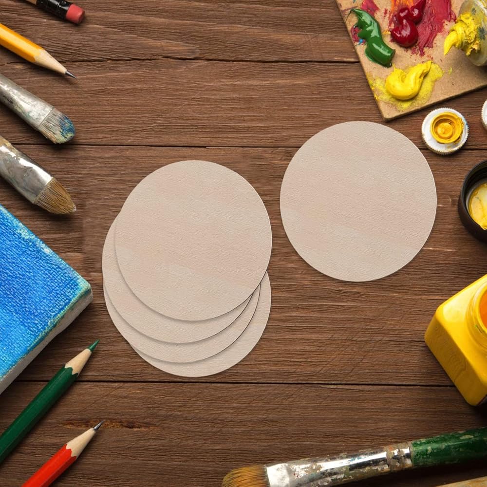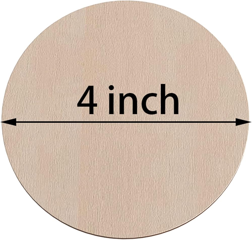 حجم دائري خشبي: يبلغ مقاس كل خشب مستدير 10.16 × 10.16 سم وسمكه 0.1 سم، 36 قطعة مربعة خشبية غير مكتملة لتلبية احتياجاتك الزخرفية المتنوعة.