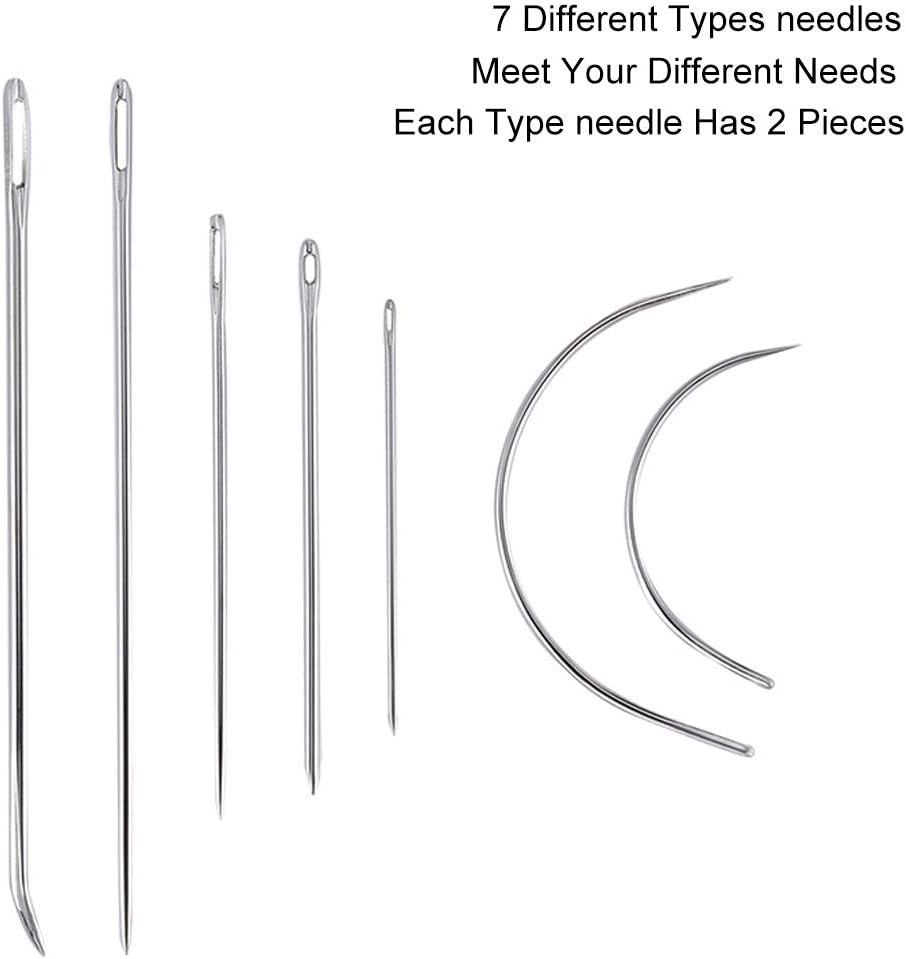الإبر والصيط: مجموعة الأدوات الجلدية من كيوتوبون مصنوعة من الفولاذ المقاوم للصدأ بما في ذلك 14 إبرة للخياطة، 7 أنواع و2 قطعة لكل نوع. يمكن أن تساعدك ثيمبل على دفع الإبر كما يمكن أن تحمي إصبعك من الأذى. يمكن أن تكون للخياطة المنزلية والأحذية والمنتجات الجلدية الأخرى التي تصممها بنفسك .