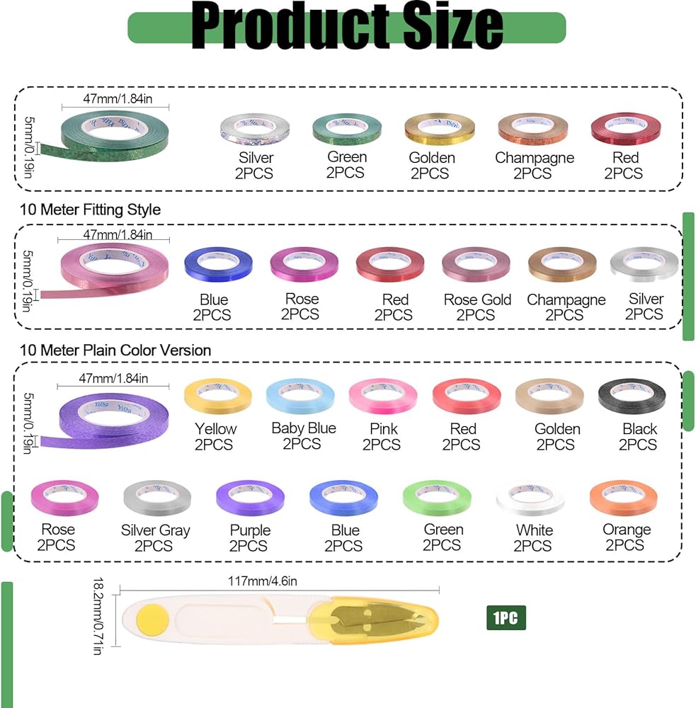 كايدك 49 قطعة 24 لفة من شريط تمويج البالونات بالوان متنوعة مع قطاعة، شريط تغليف الهدايا للحرف الفنية والزهور وديكورات حفلات اعياد الميلاد والزفاف والكريسماس