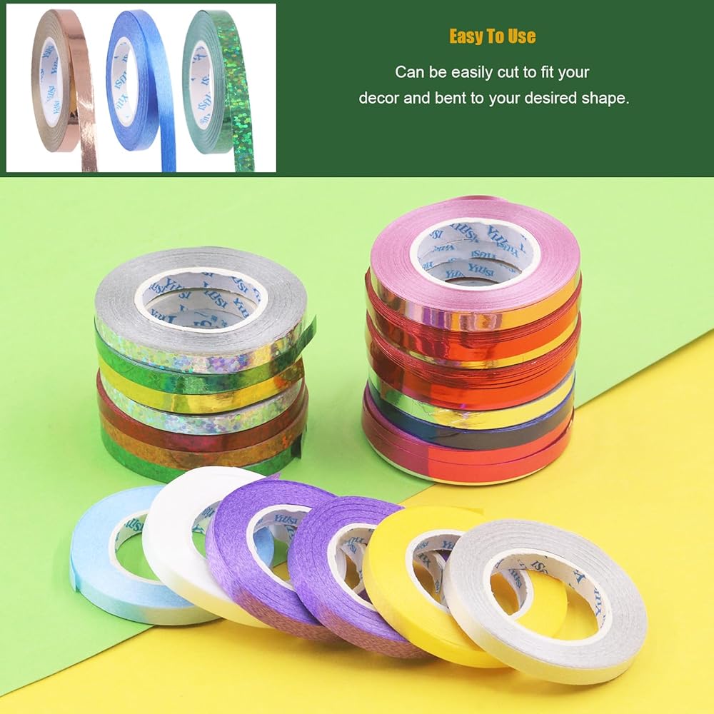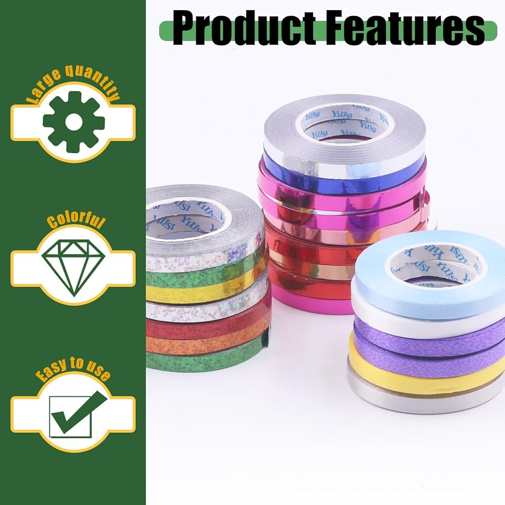 [ألوان مختلفة لمزيد من الخيارات] تتميز أشرطة تغليف الهدايا بنمط سادة ونمط لامع ونمط ليزر باللون الأصفر والأبيض والذهبي والفضي والأزرق والأزرق السماوي والأسود والبرتقالي والأخضر والأحمر الوردي والأرجواني والوردي والأحمر والرمادي والذهبي الوردي والذهبي الشامبانيا. يمكنك بالتأكيد العثور على تطابق الألوان المثالي لأي مشروع إبداعي وفقًا لتفضيلاتك!