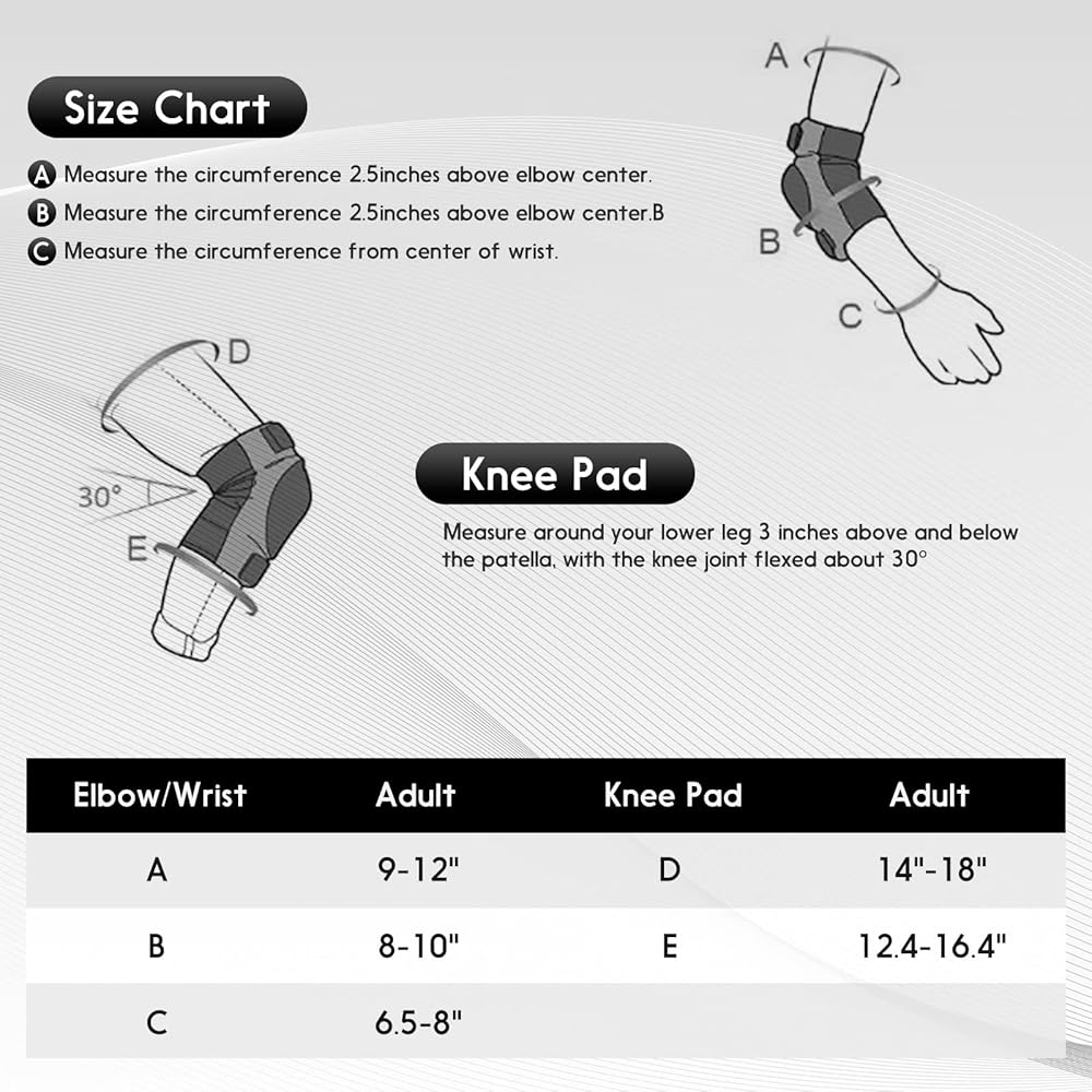 تصميم أنيق: تصميم أنيق مع وسائد الركبة ووسادات الكوع ومظهر واقي المعصم، يمنحك مظهرًا أكثر روعة. يأتي مع زوج واحد من وسادات الكوع، وزوج واحد من وسادات الركبة، وزوج واحد من وسادات المعصم. استمتع برياضاتك المثيرة في الهواء الطلق.