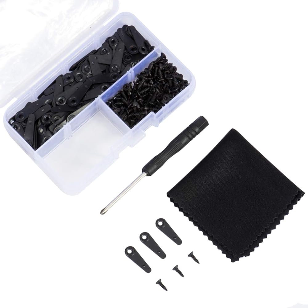 • تأتي مع صندوق تخزين بلاستيكي شفاف و 136 زر دوران الإطار، 136 براغي، 12 × 12 سم قماش تنظيف من الألياف الدقيقة، 1 قطعة مفك براغي.