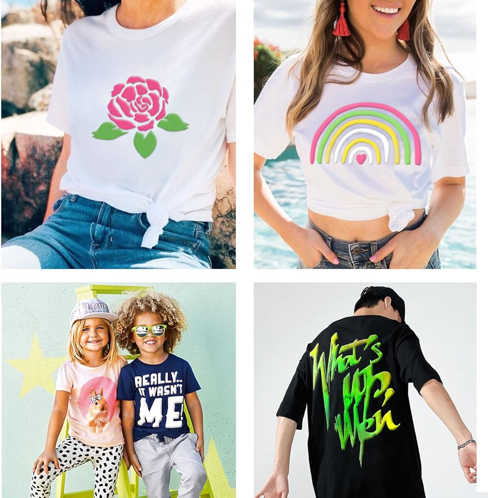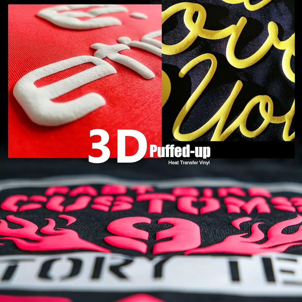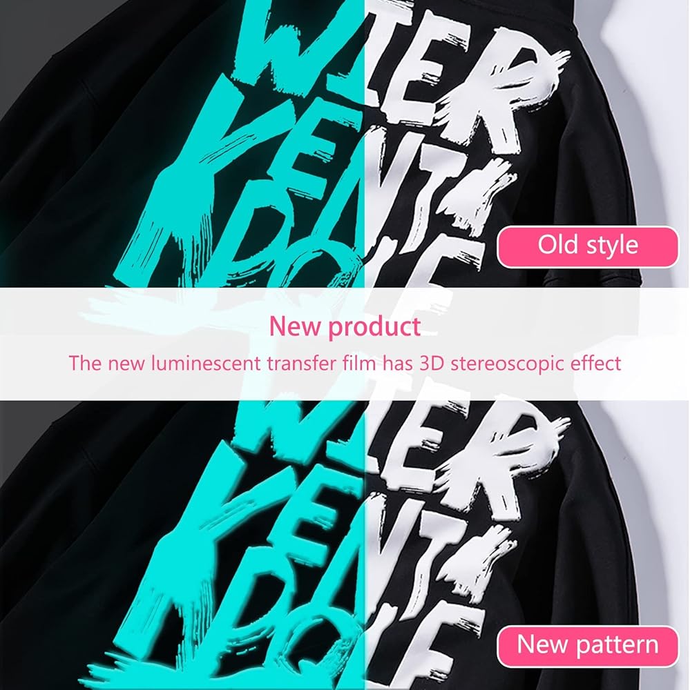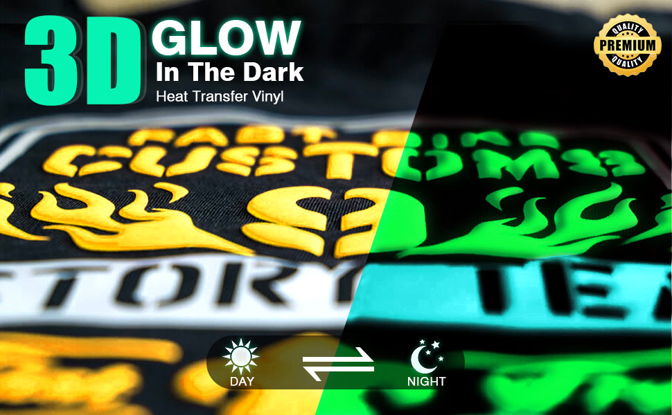 [نقل الحرارة من الفينيل]: 4 ورقات 12 × 10 بوصة منتفخة ثلاثية الأبعاد، هذا الفينيل ينتفخ بعد الضغط الحراري على مشروعاتك، ويظهر تأثير ستيريو ثلاثي الأبعاد ويمنحك تأثيرًا بصريًا مختلفًا. عندما يكون الفينيل في الكثير من الضوء، يمكن أن يتوهج htv لفترة طويلة في الظلام.