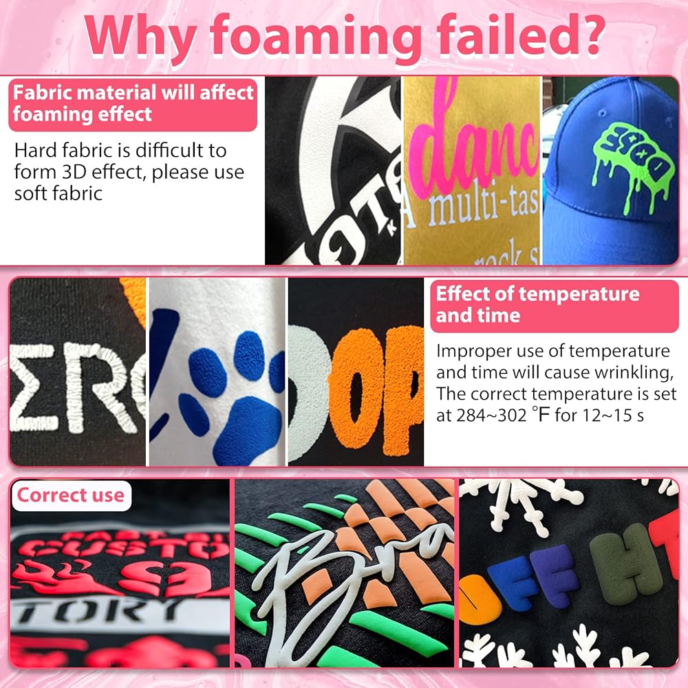 [سهلة القطع والأعشاب]: المكواة المنتفخة على الفينيل مصنوعة من مادة البولي يوريثان، وهي أسهل في القطع والأعشاب من الفينيل العادي الذي ينقل الحرارة. ملحوظة: تأثير نفخ أفضل على الأقمشة الناعمة. درجة الحرارة الموصى بها: 284-302 درجة فهرنهايت (140 درجة مئوية - 150 درجة مئوية) لمدة 12-15 ثانية.