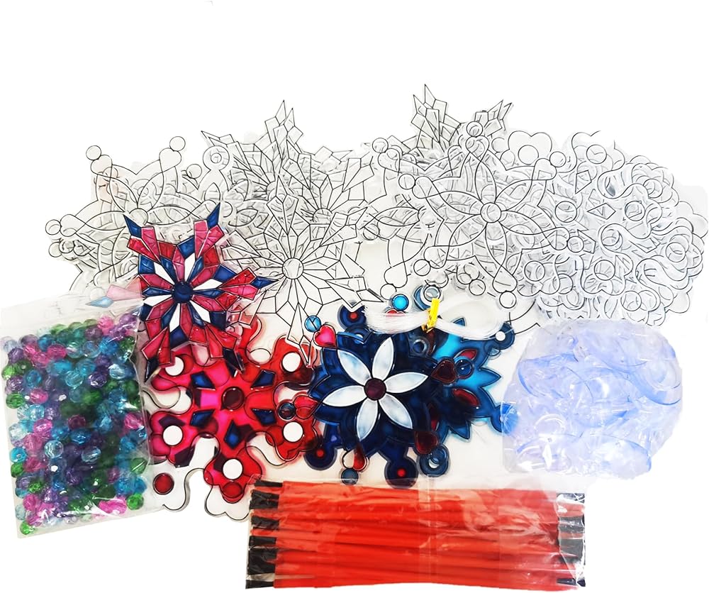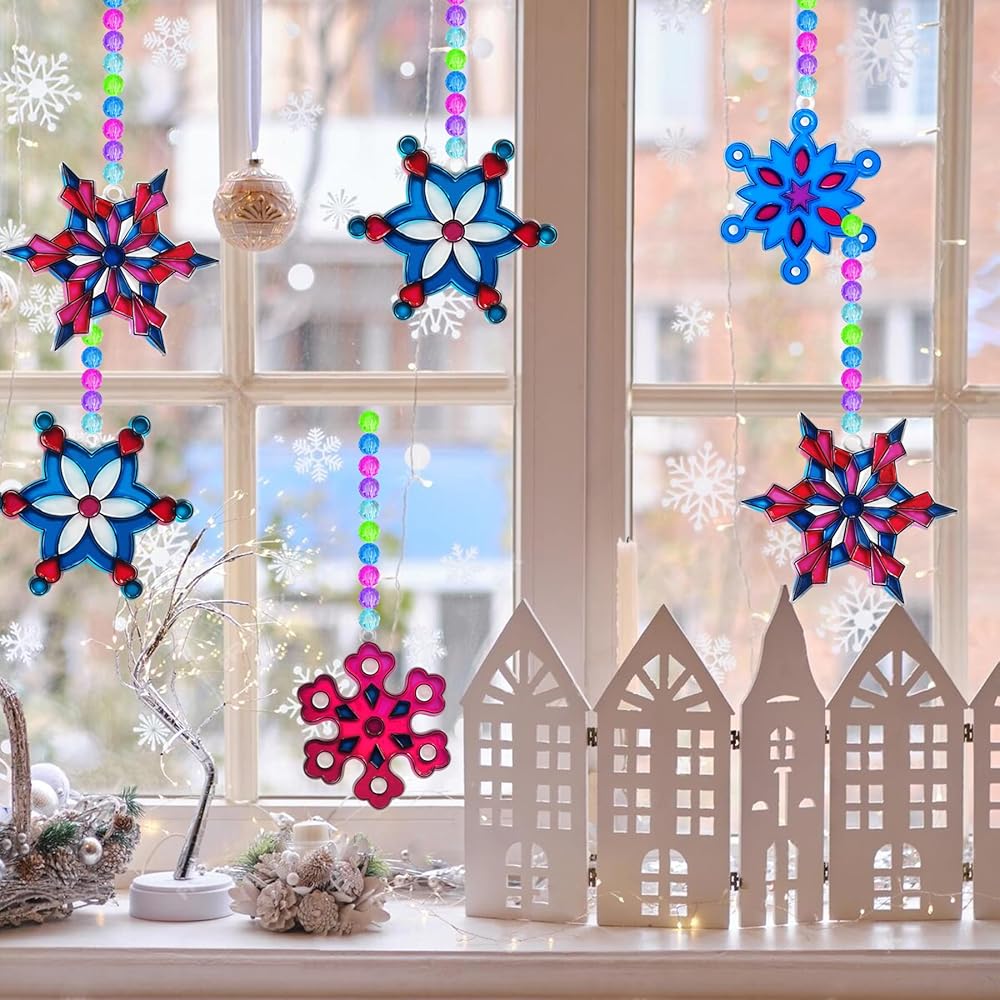 mlolm 24 مجموعات ندفة الثلج suncatchers عيد الميلاد الشتاء الحرف مجموعات diy نافذة الطلاء الفن suncatchers الزينة الشمس الماسك مجموعات للأطفال عطلة الأنشطة المنزلية الموسمية الفصول الدراسية