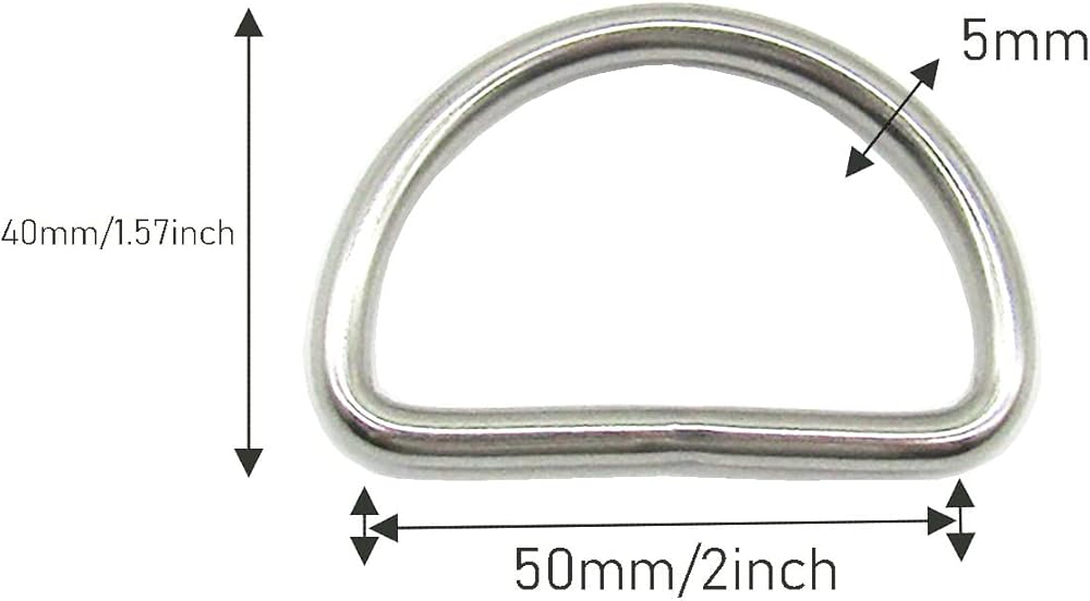حلقة معدنية على شكل حرف D، 4 قطع 2 انش من الستانلس ستيل الملحومة على شكل حرف D مشبك معدني لحياكة الادوات والادوات اليدوية والاكسسوارات التي تصنعها بنفسك لطوق الحيوانات الاليفة، فضي، 2 انش, فضي, 2inch
