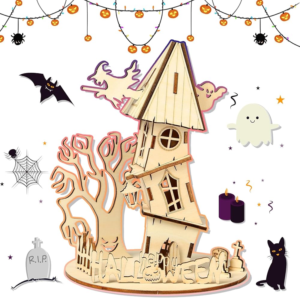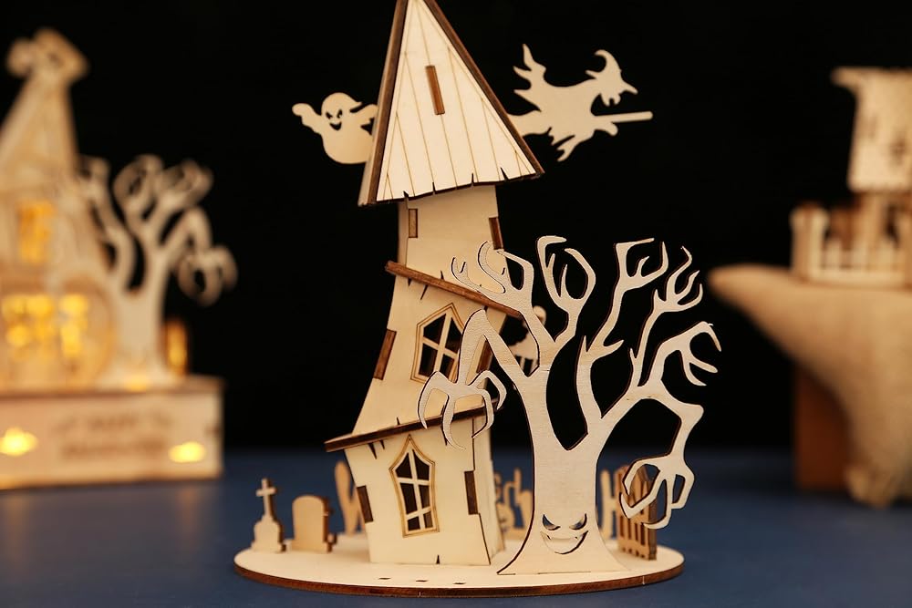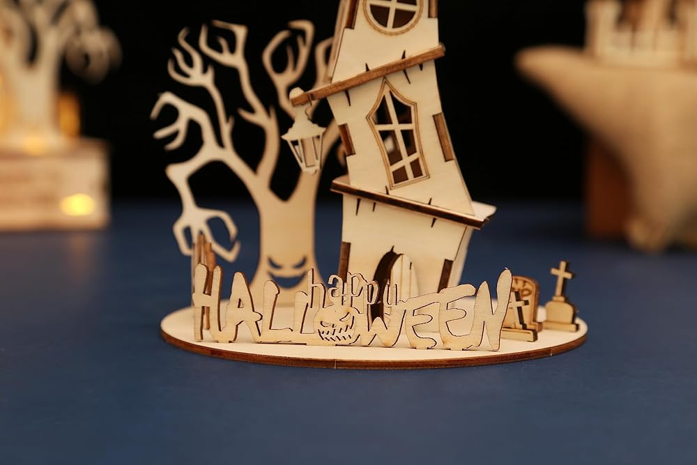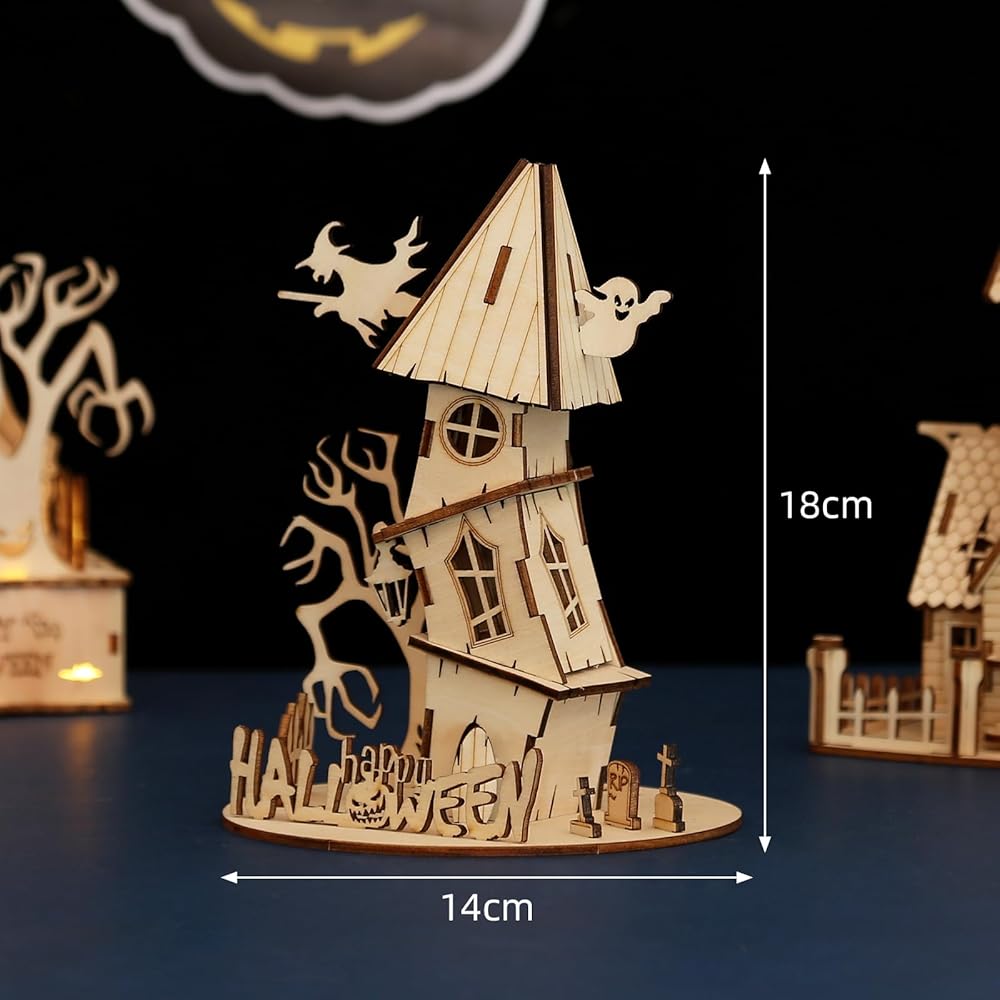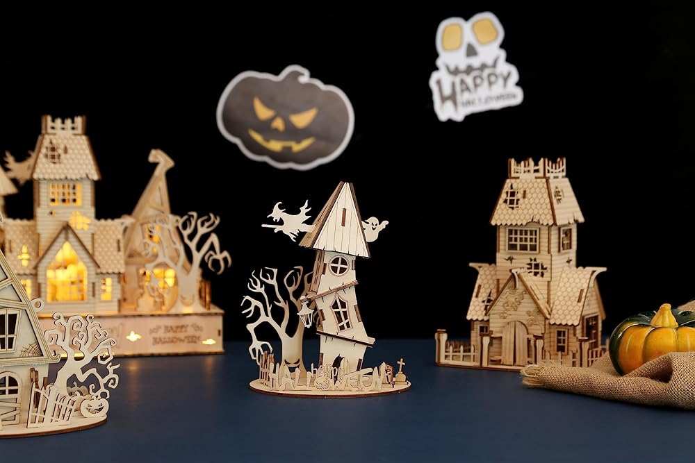 ألغاز خشبية ثلاثية الأبعاد لمنزل الهالوين للبالغين، ألغاز للهالوين/عيد الميلاد، هدايا للبالغين والمراهقين لبناء مجموعة من الألعاب المكتبية التعليمية DIY