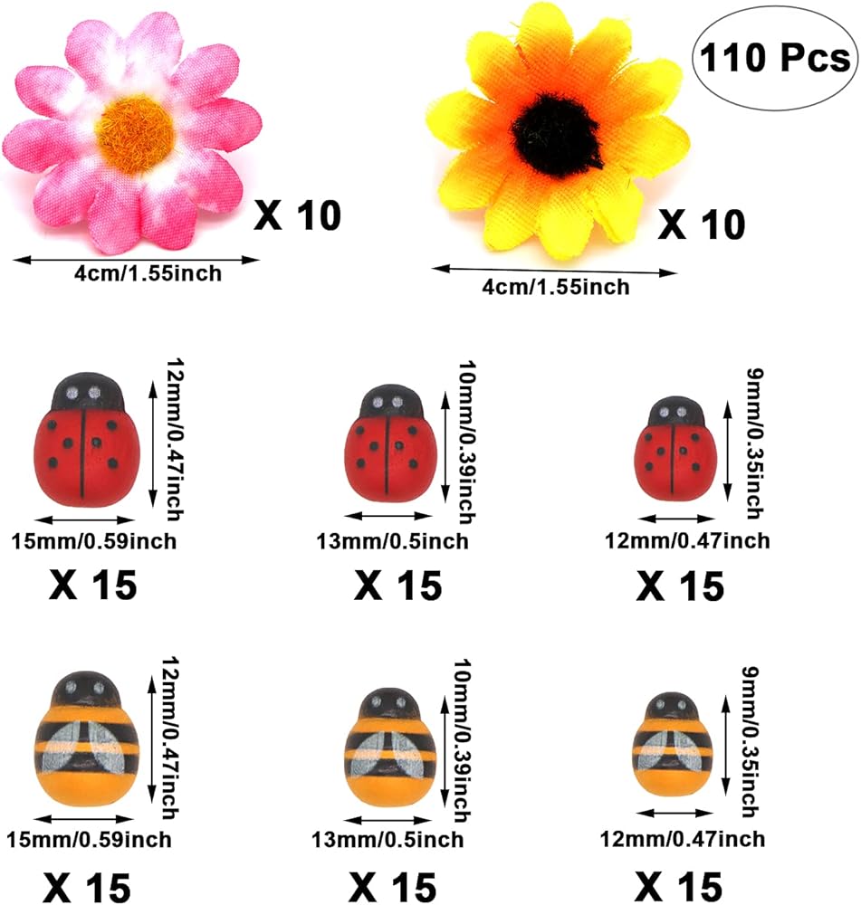 النحلة الصغيرة والخنفساء الصغيرة صغيرة وجذابة، مليئة بنكهة الصيف، ومناسبة لتزيين الشاي بعد الظهيرة والكعك وعصابات الرأس DIY ومشابك الشعر وإطارات الصور والبطاقات والزجاج والمرايا والحرف اليدوية وحفلة أعياد الميلاد وما إلى ذلك. أضف المزيد من الحياة اليومية مليئة بالمفاجآت الصغيرة والمرح.
