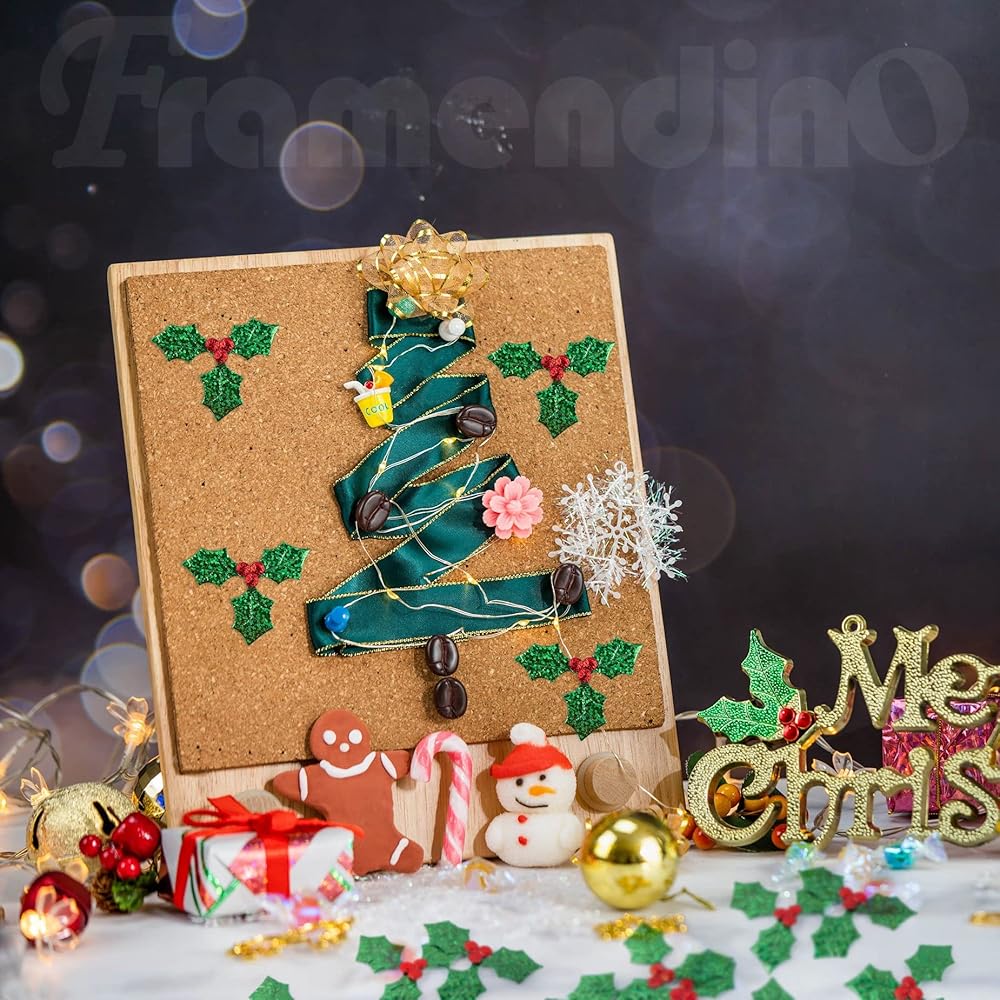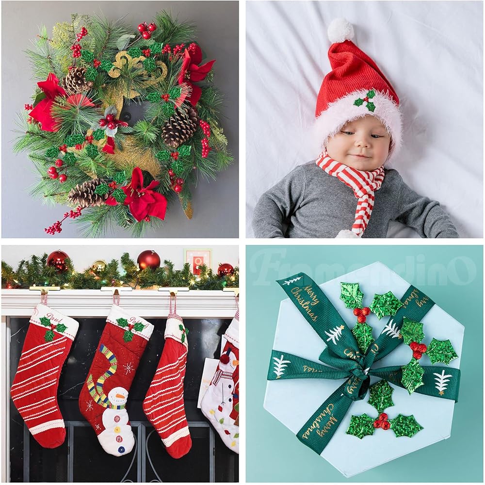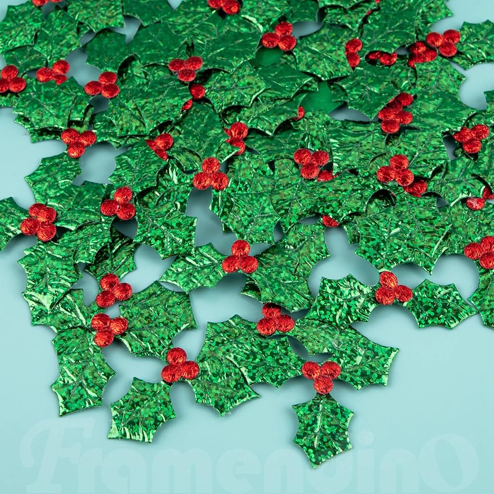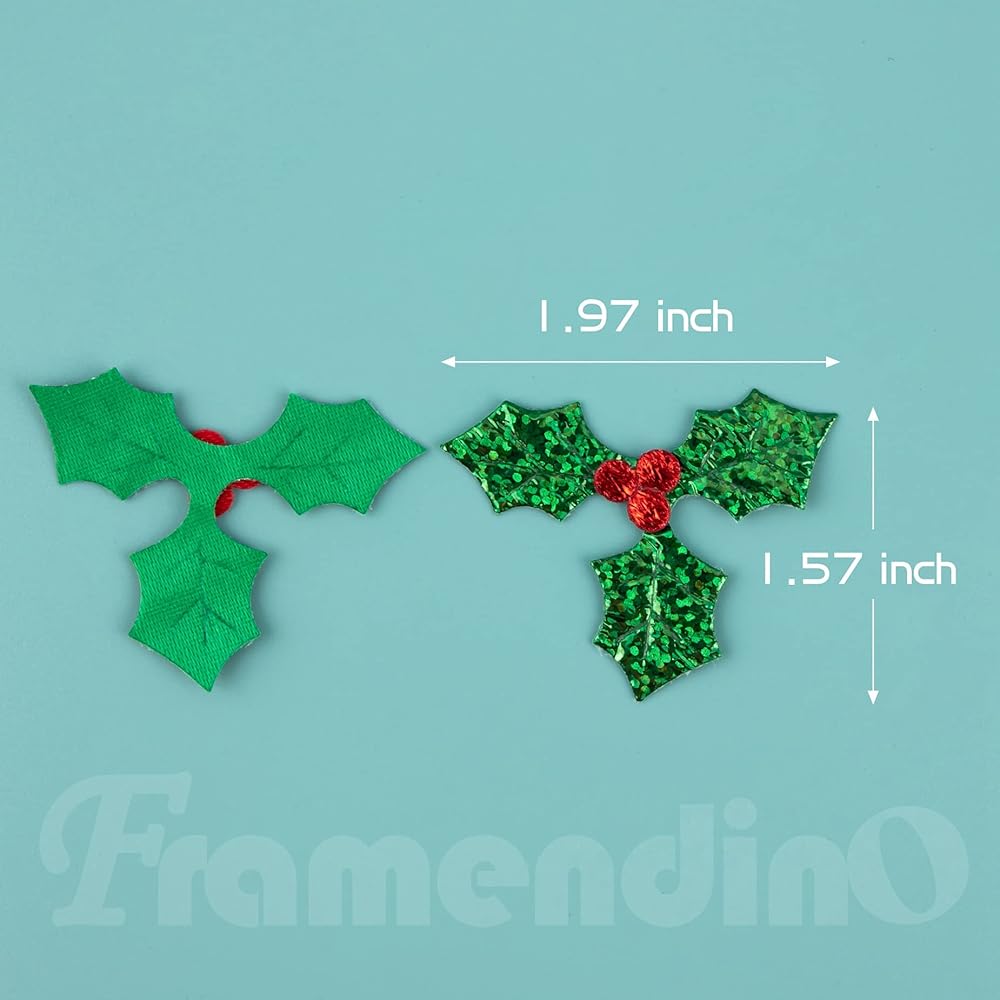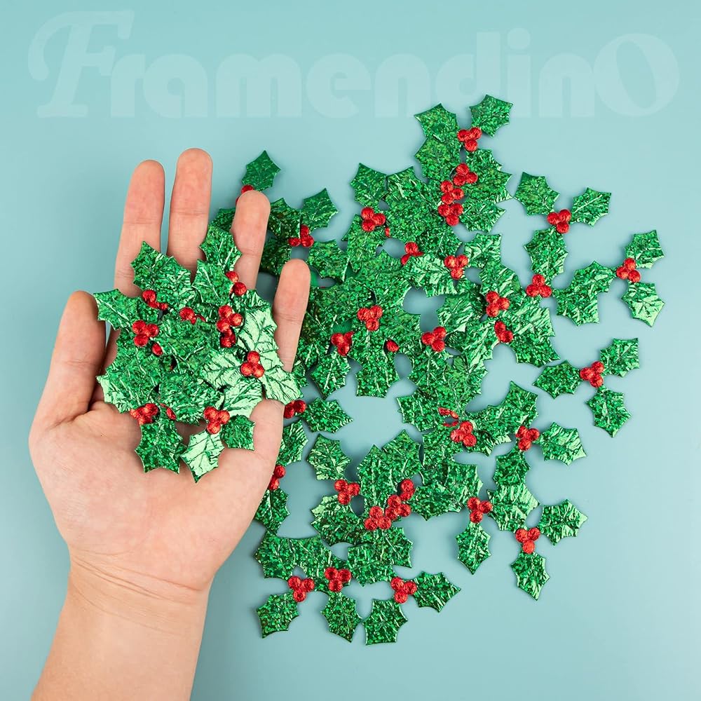 Framendino، 100 حزمة عيد الميلاد هولي أوراق التوت الأحمر الأرجواني زهرة النثر الملونة النسيج الليزر زخرفة لشجرة عيد الميلاد الجورب سجل القصاصات إكليل بطاقة هدية