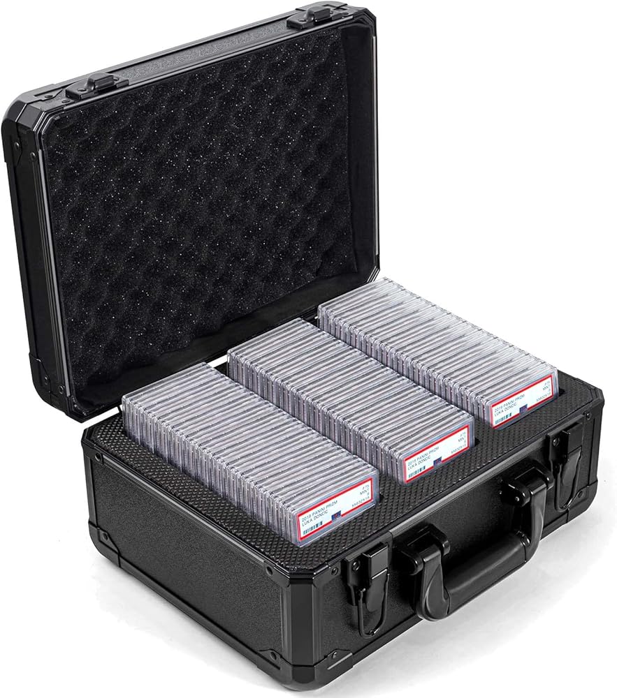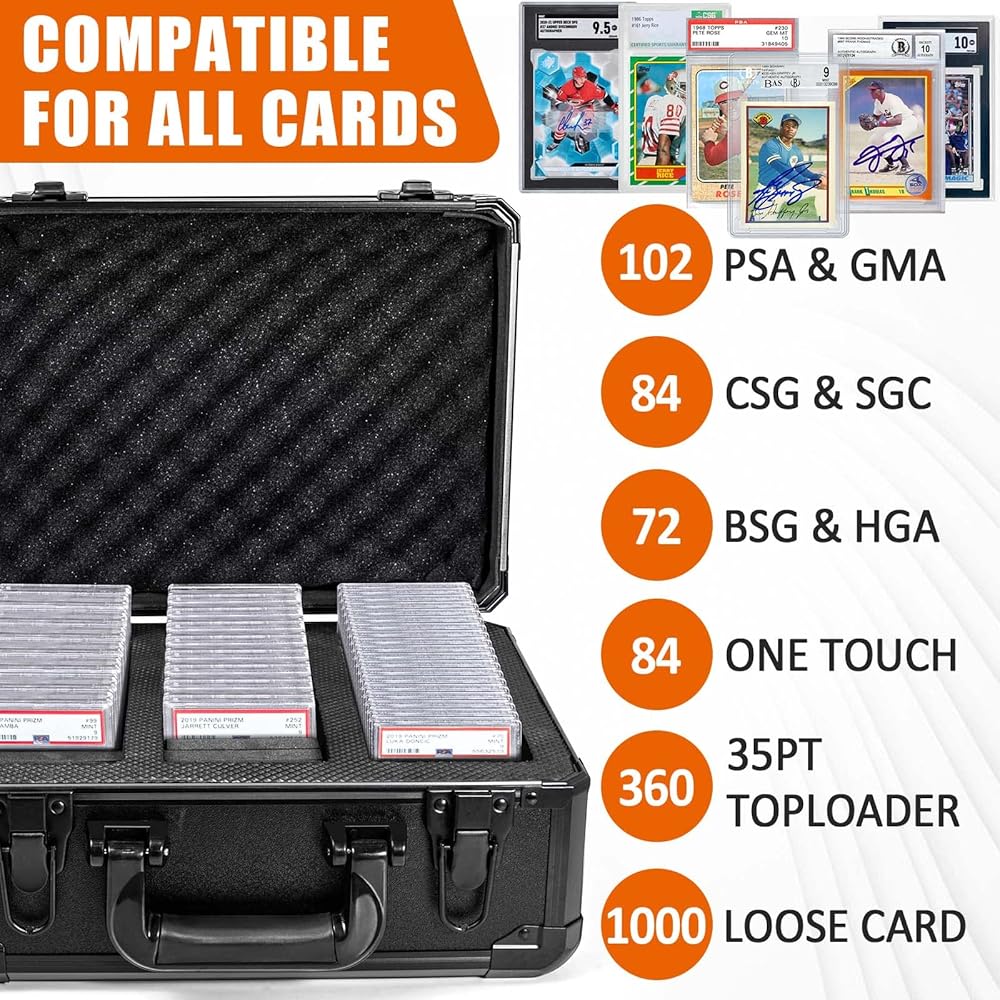 حافظة تخزين بطاقات متدرجة فاخرة: يمكن لكل حافظة بطاقات تداول أن تحمل حوالي 102 بطاقة مصنفة من بي اس ايه أو 72 بطاقة بي جي اس. يمكن للصندوق الآمن أيضًا حمل أكثر من 1000 بطاقة بسيطة أو حوالي 360 وحدة تحميل علوية. يمكن لكل فتحة حمل 34 بطاقة مصنفة من بي اس ايه، 24 بطاقة بي جي اس أو 120 بطاقة تحميل علوية.
