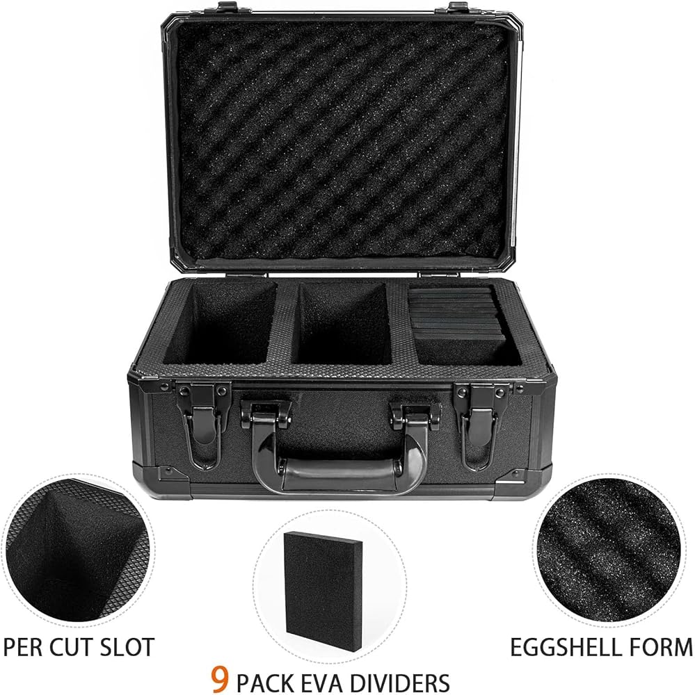 9 حشوات إضافية: 9 حشوات إضافية مجهزة بالعلبة، يمكنك استخدام حشوات ايفا أفقيًا أو رأسيًا لخلق ملاءمة آمنة. توفر حماية إضافية لألواح البطاقات.