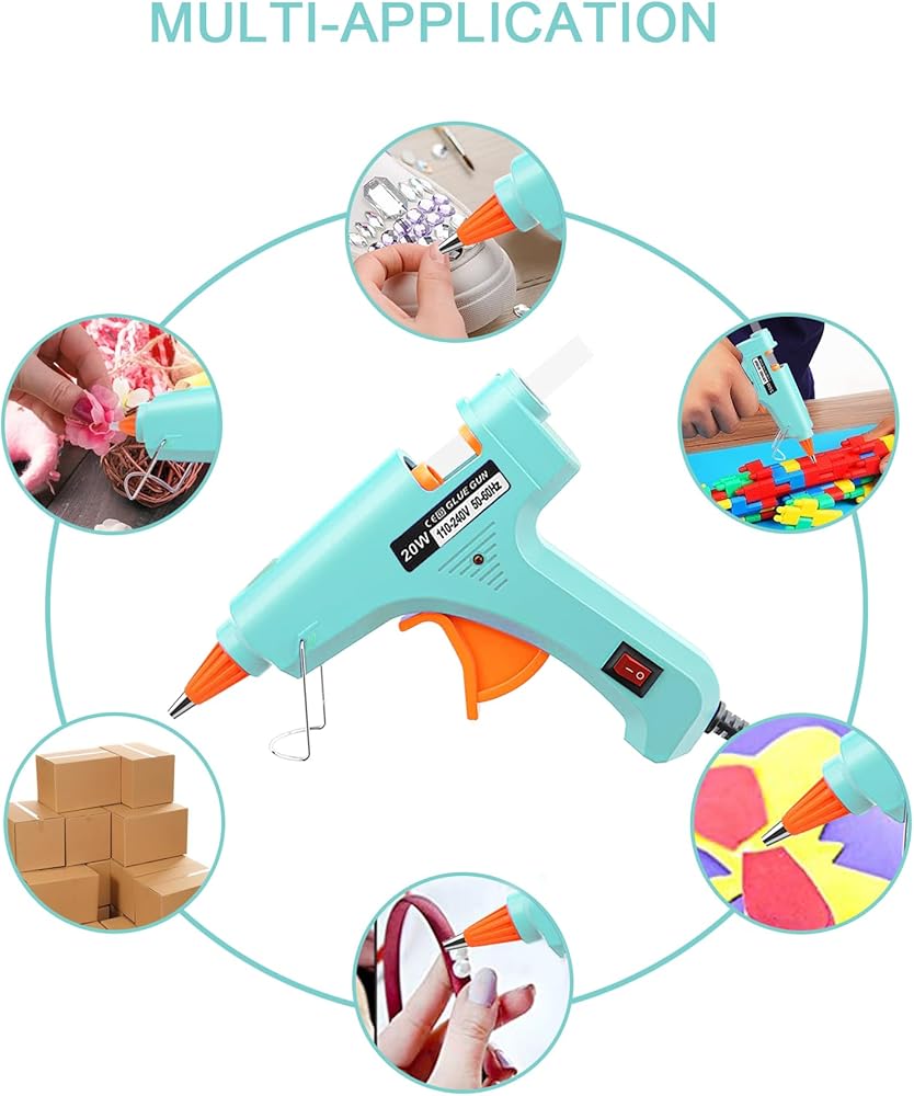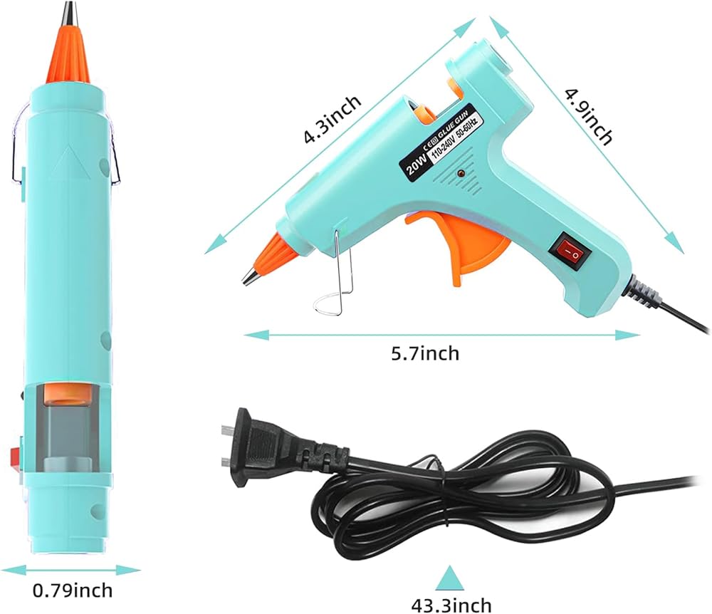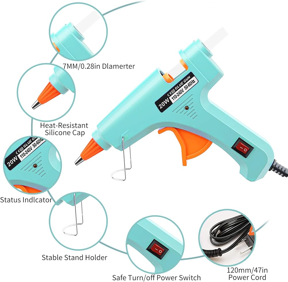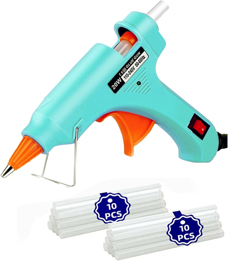 مجموعة مسدس الغراء الساخن: مجموعة مسدسات الغراء الساخن الصغيرة مع 20 عصا تذوب مسدس الغراء للأطفال في المدرسة والفنون المنزلية والإصلاحات السريعة متعددة التطبيقات باللون الأزرق الفاتح