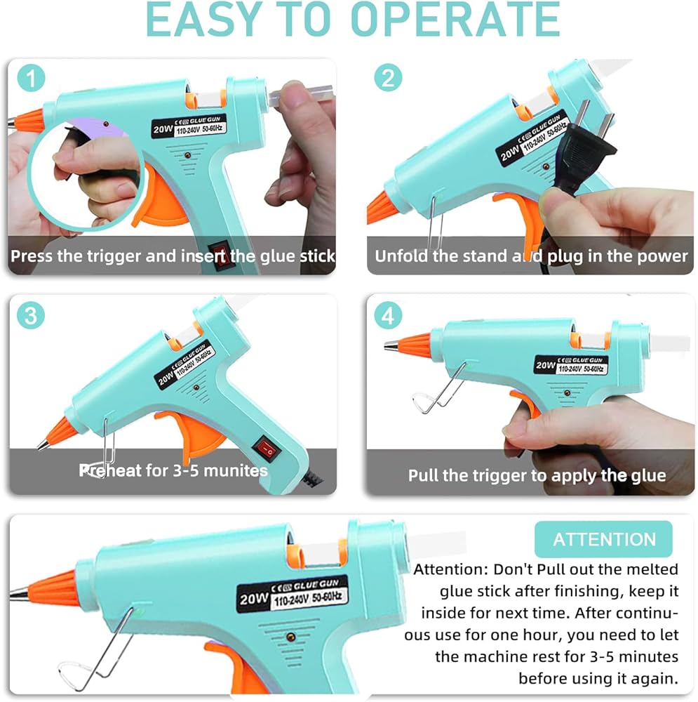 【تسخين سريع ومقاوم للحرارة】: مسدسنا الساخن الصغير المزود بنظام تسخين حراري ممتاز، يستغرق من 3 إلى 5 دقائق فقط للتسخين المسبق وإطلاق الغراء بسلاسة، ويحافظ على درجة حرارة ثابتة تلقائيًا.