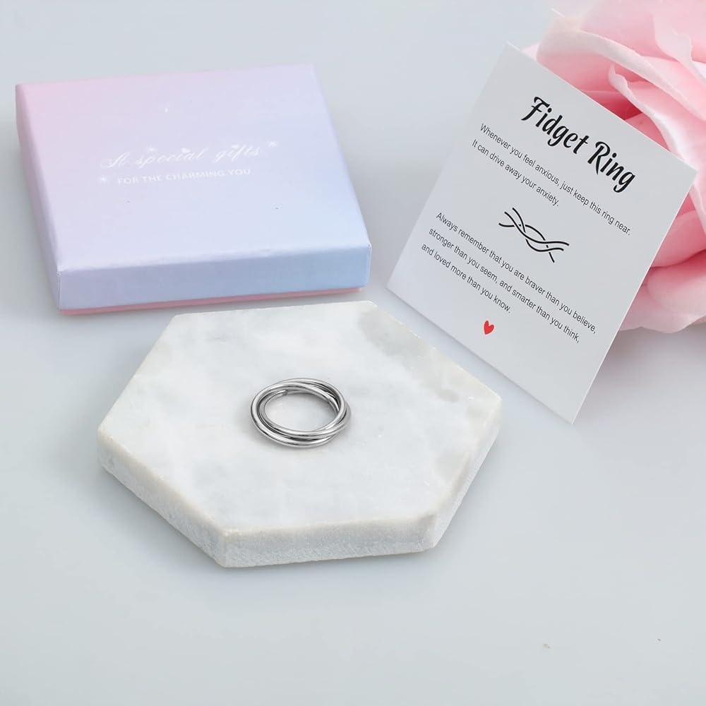 ✔ خواتم للنساء: حلقة قلق للنساء، موضوعة في صندوق هدايا جميل، هدية جاهزة للتقديم. تأتي مع بطاقة رسالة "Fidget Ring"، وكلمات ملهمة مكتوبة، وأفضل حلقة مضادة للقلق، وهدايا ملهمة للنساء والرجال والابنة وابنة الأخت والحفيدة والابنة الروحية والأطفال.