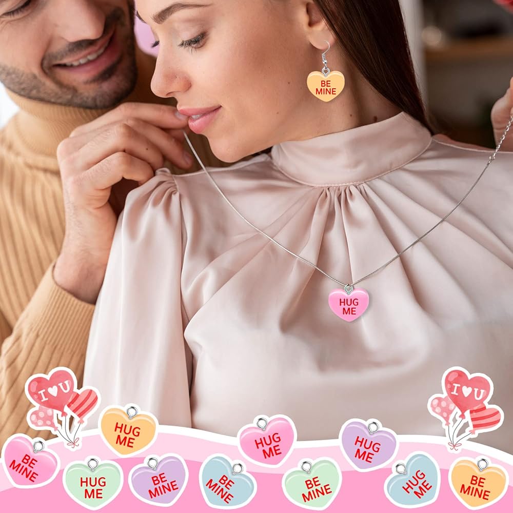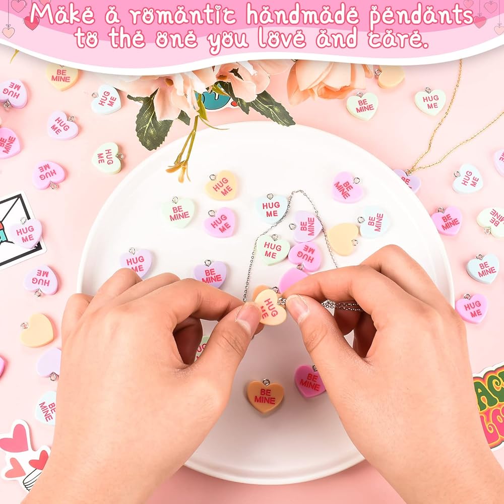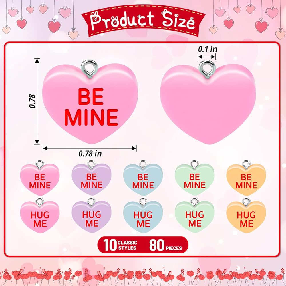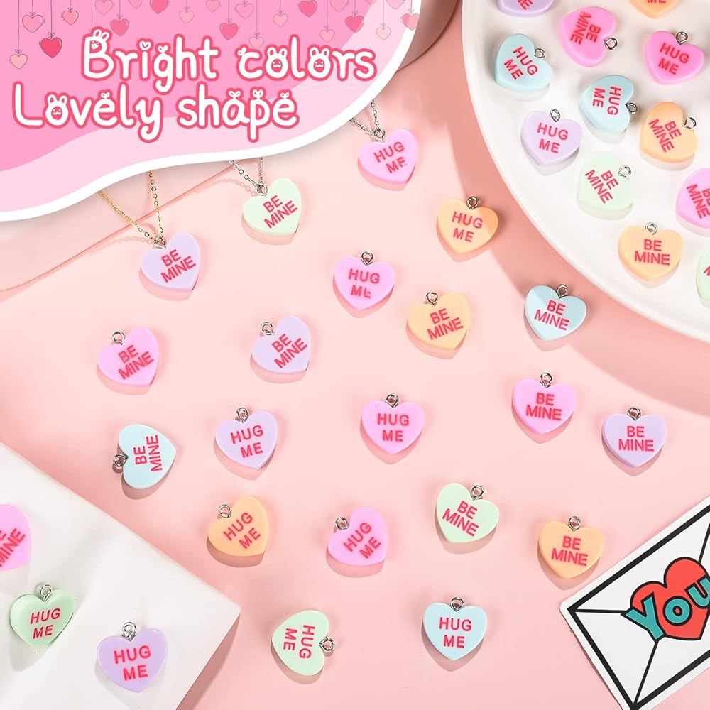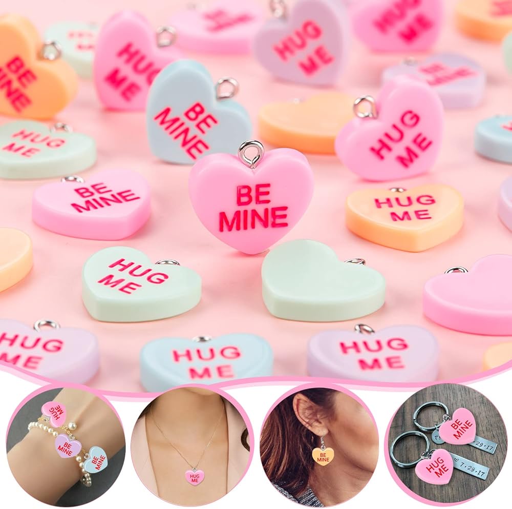 اتش تي زد ان اتش اكس تي 80 قطعة من تعليقات عيد الحب على شكل قلب، قلادة من الراتنج بتصميم هاج مي بي ماين لصنع المجوهرات للقلائد وسلسلة المفاتيح والاقراط الحرفية