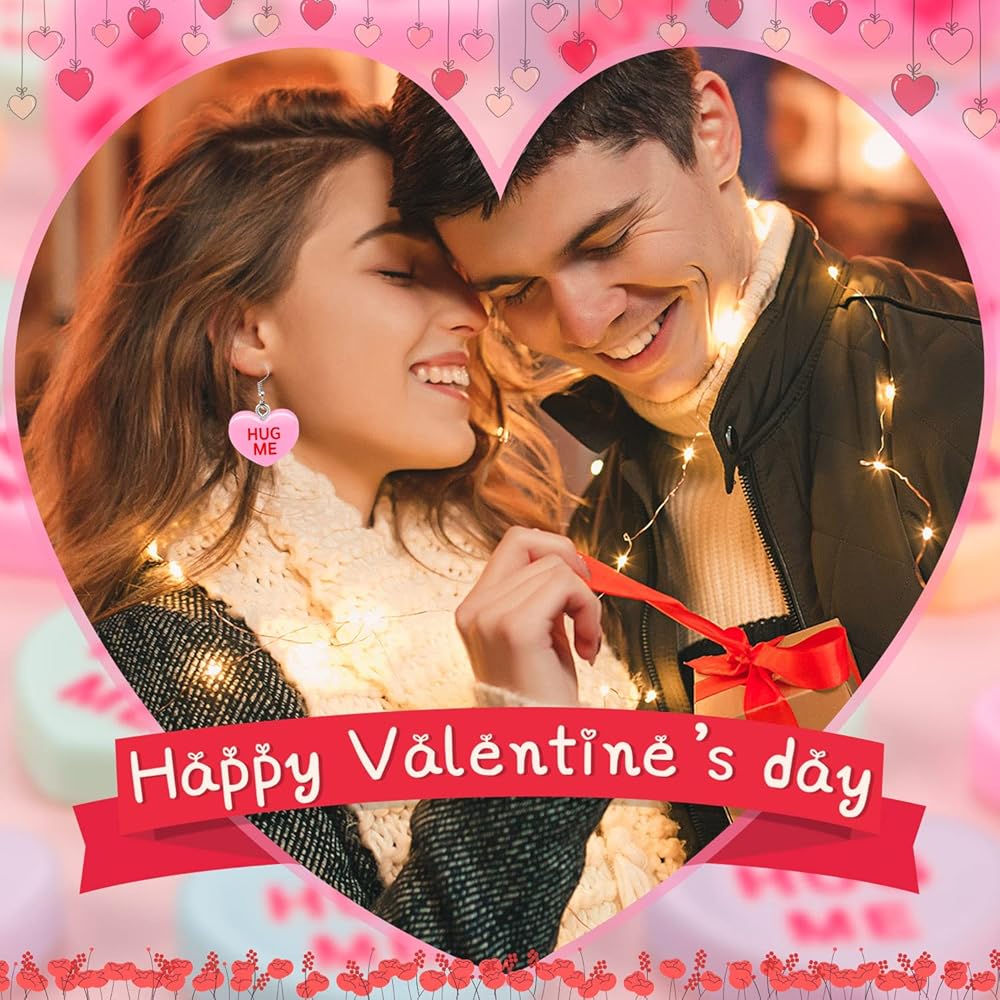 ♥【تصميم مقطوع】هذه الحليات المتدلية المصنوعة من الراتنج مطبوعة بعبارة Hug Me and Be Mine، لخلق جو عيد الحب وجلب الحياة الملونة لك.