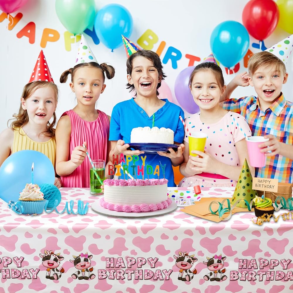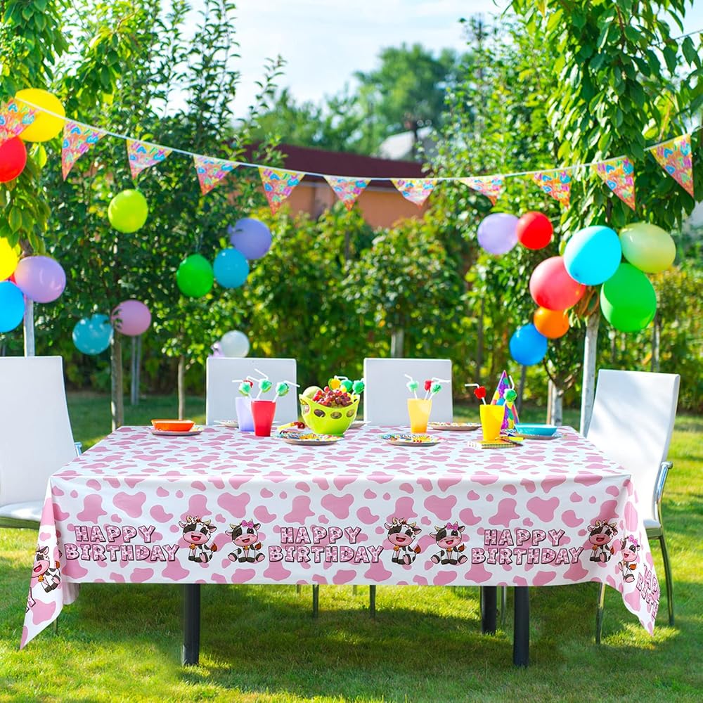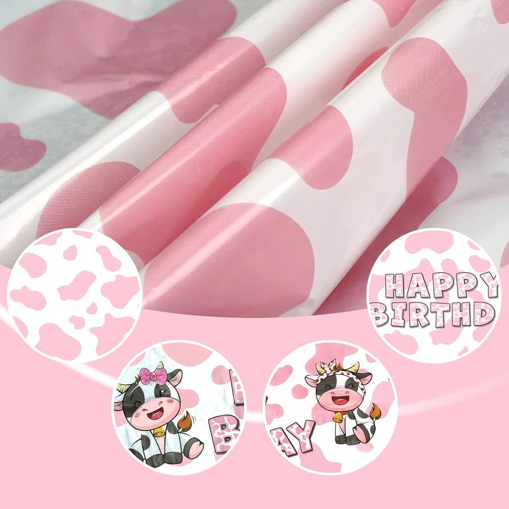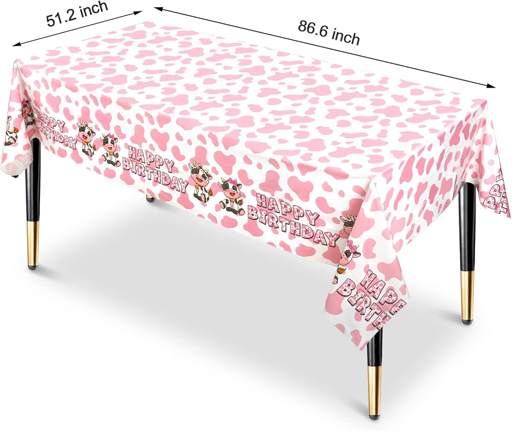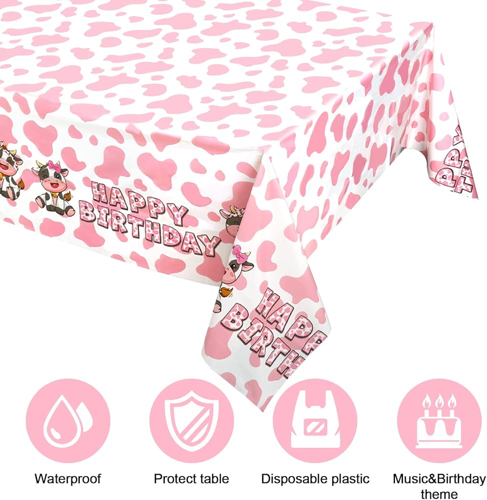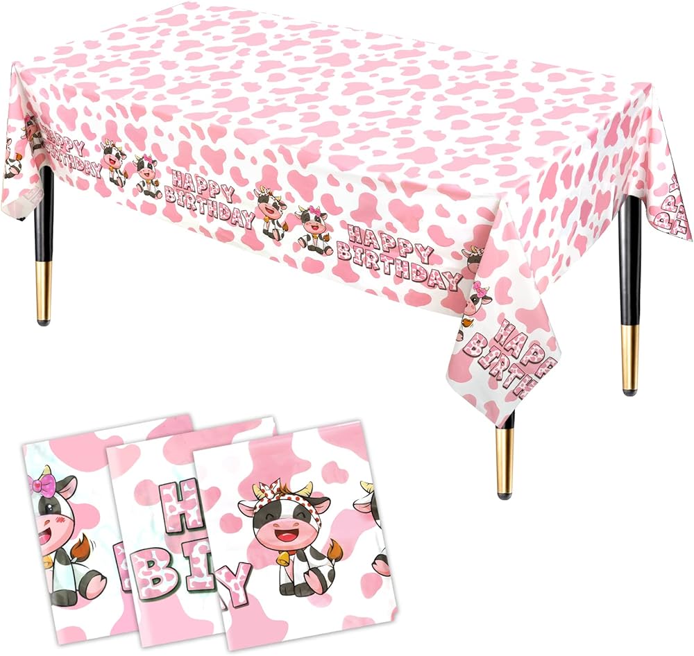 محتويات العبوة: سوف تحصل على ثلاثة مفارش طاولة للحفلات بطباعة بقرة وردية، غطاء طاولة عيد ميلاد بقرة وردية.