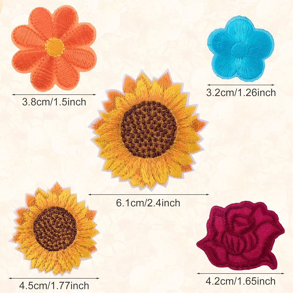 24 قطعة من رقع الزهور الملونة باوغو على شكل زهرة عباد الشمس تلعثم خياطة على الرقع المطرزة لتزيين الشنط والجاكيتات والجينز والملابس (5 مقاسات مختلفة)