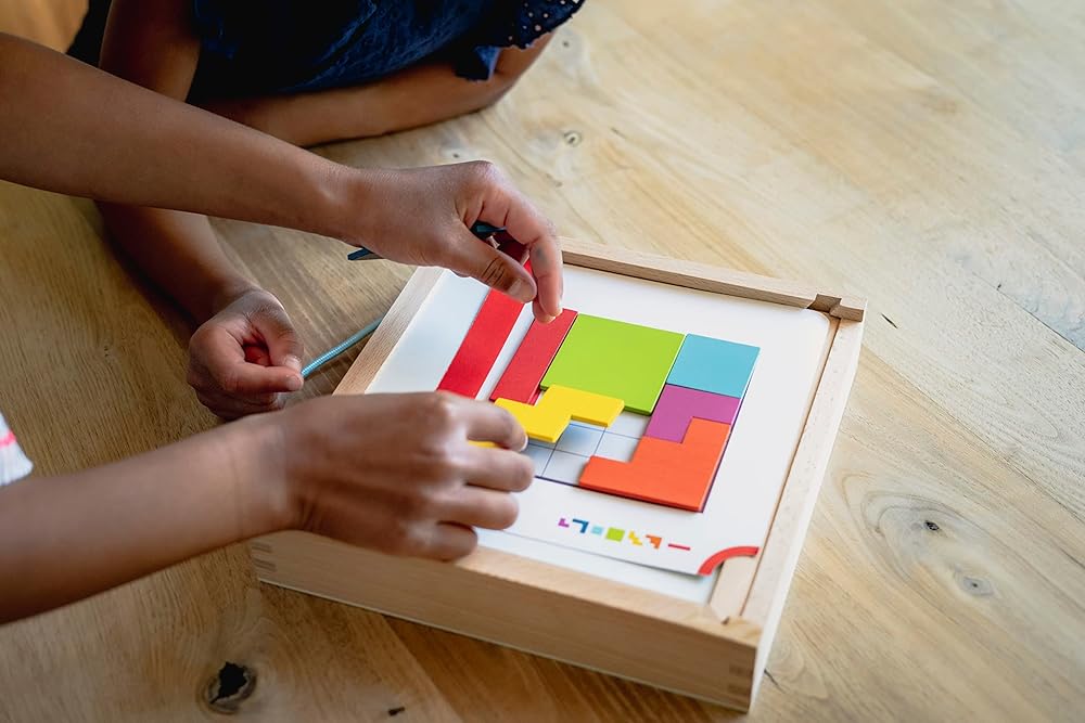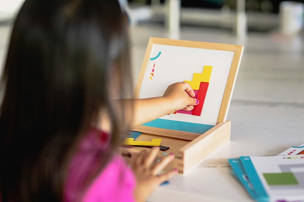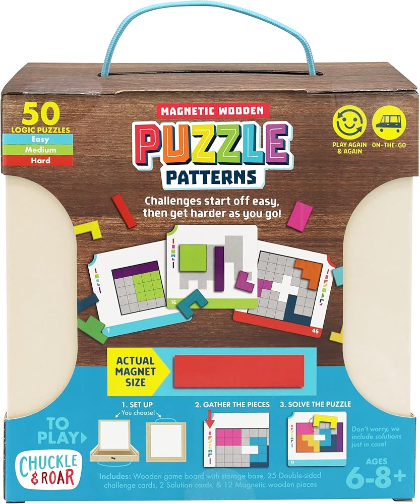 Chuckle & Roar - أنماط ألغاز خشبية مغناطيسية - أحجية خشبية ممتعة وتعليمية للأطفال - تطور المهارات الحركية الدقيقة - أحجية البلاط المغناطيسي 12 قطعة