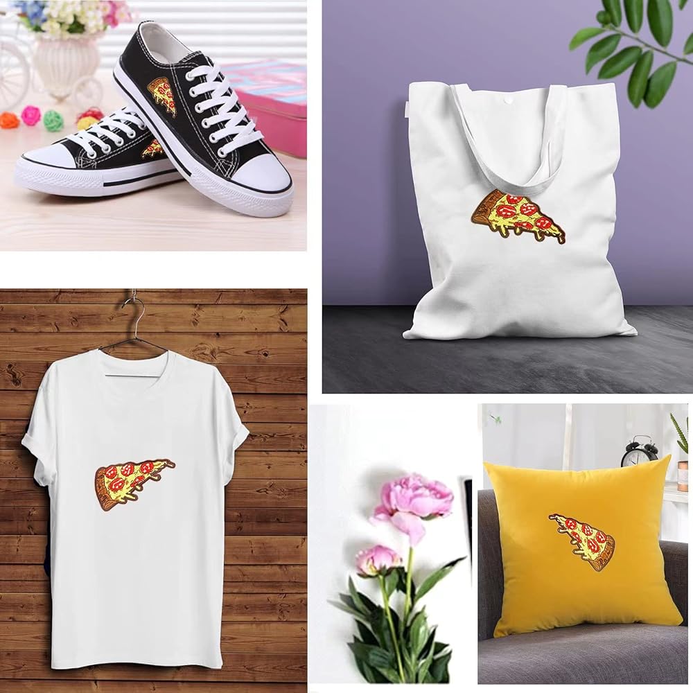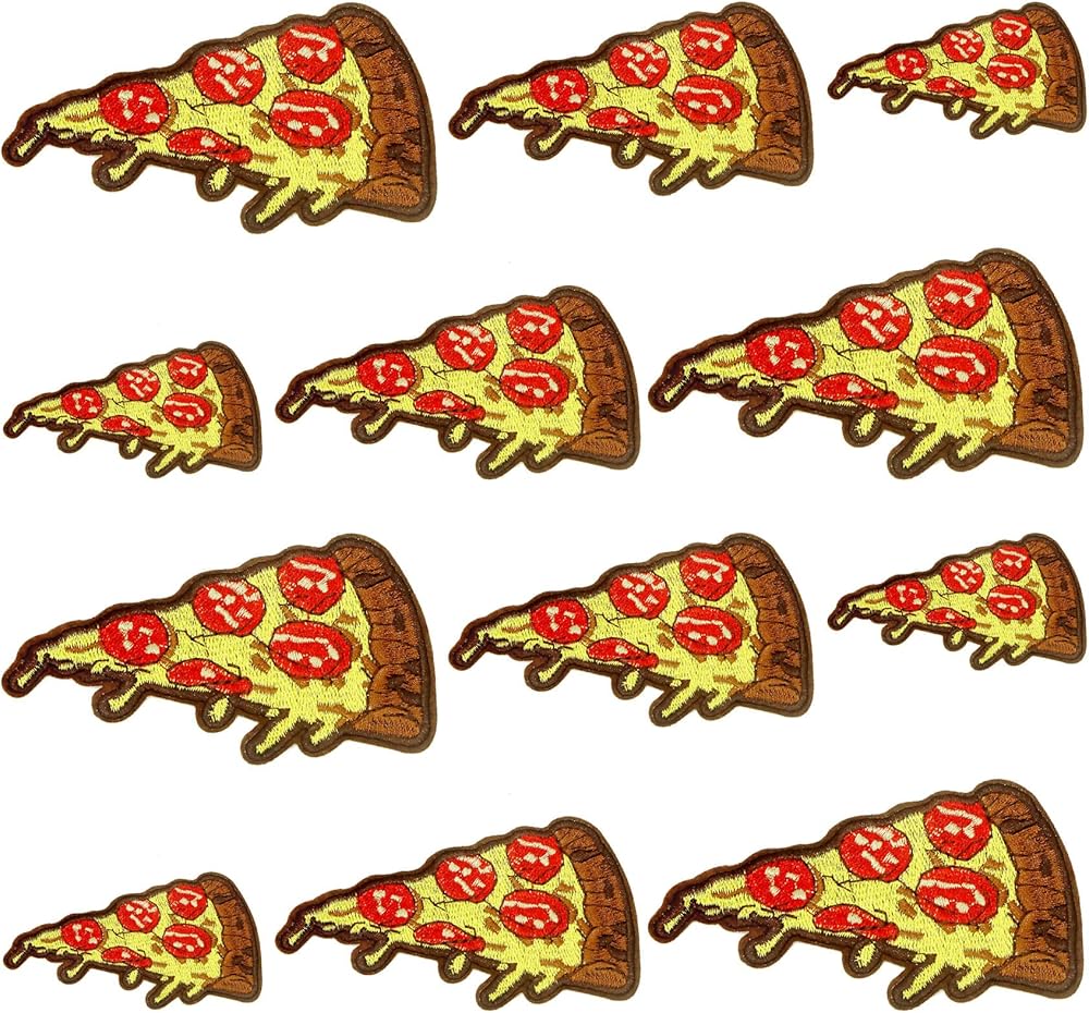 12 قطعة من رقع التطريز على شكل بيتزا لطيفة، رقع خياطة مطرزة بنمط الطعام للملابس والحقائب والجاكيتات والجينز