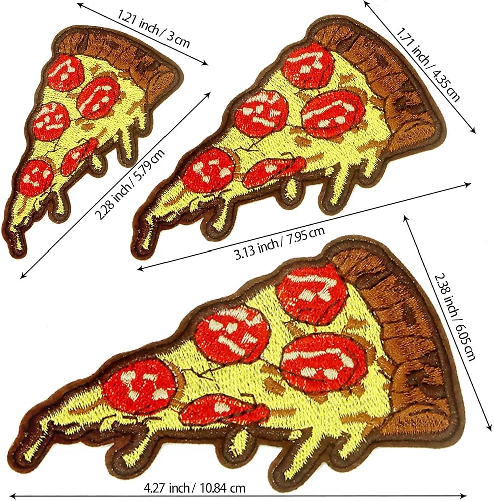 رقعة قابلة للكي: ستحصل على 12 قطعة من رقعة تطريز البيتزا ، كبيرة ومتوسطة وصغيرة بثلاثة مقاسات، 4 قطع لكل مقاس، أحجام مختلفة وكمية كافية لاحتياجات الديكور اليومية.