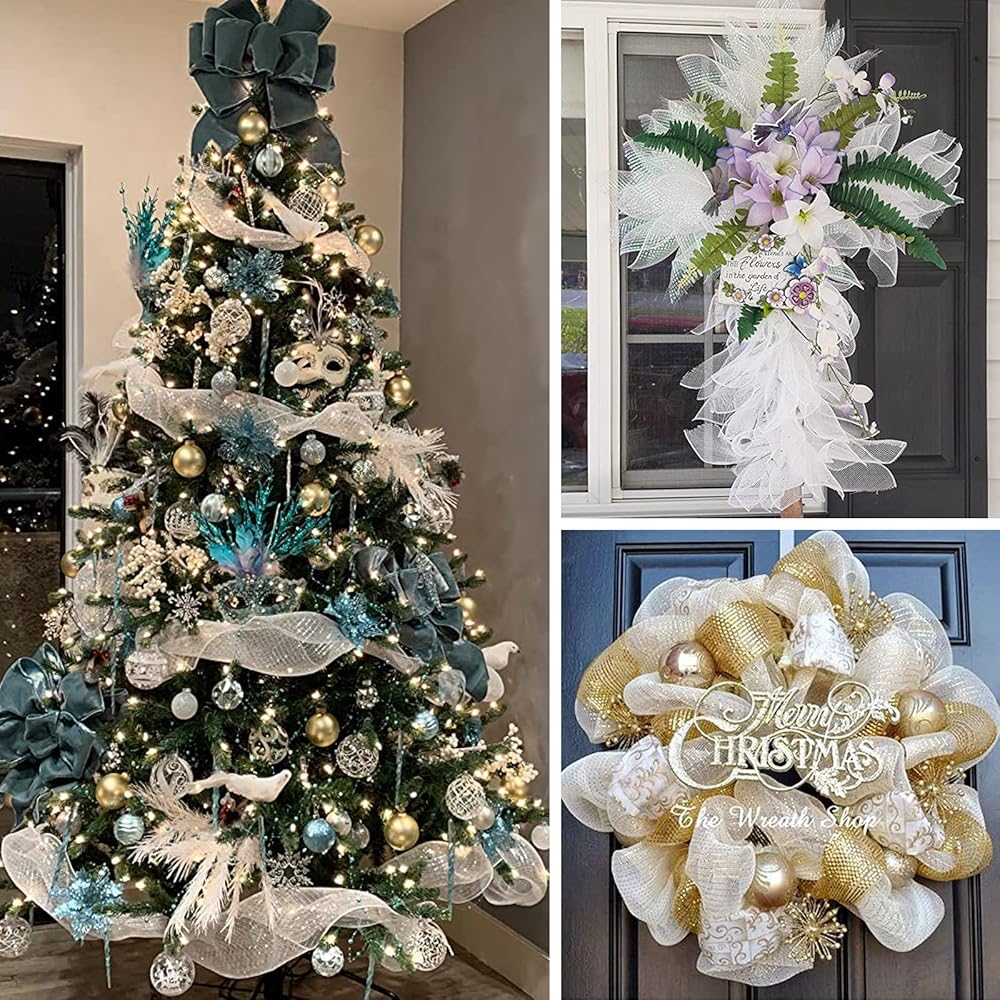 • 【لوازم إكليل شبكي ديكو】الشريط الشبكي مثالي لصنع أكاليل الزهور والأكاليل والحرف اليدوية والأقواس وديكورات صناديق الهدايا وسلال الهدايا وديكورات المنزل. يمكنك أيضًا استخدامها لتغليف عبوات الهدايا وتزيين حفلات عيد الميلاد.