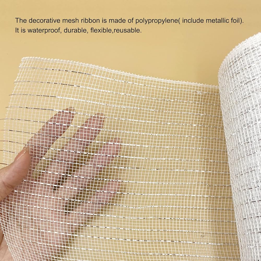 • 【شريط شبكي من البوليستر المعدني】شبكة ديكو لعيد الميلاد مصنوعة من البولي بروبيلين بنسبة 100%، مرنة وخفيفة الوزن ومقاومة للماء ومتينة وقابلة لإعادة الاستخدام. وهو سهل الانحناء والطي والحفاظ على الشكل. يمكن قصه حسب الطول الذي تحتاجه دون القلق بشأن أي خيوط سائبة معلقة فوق عملك.