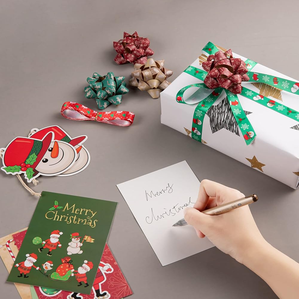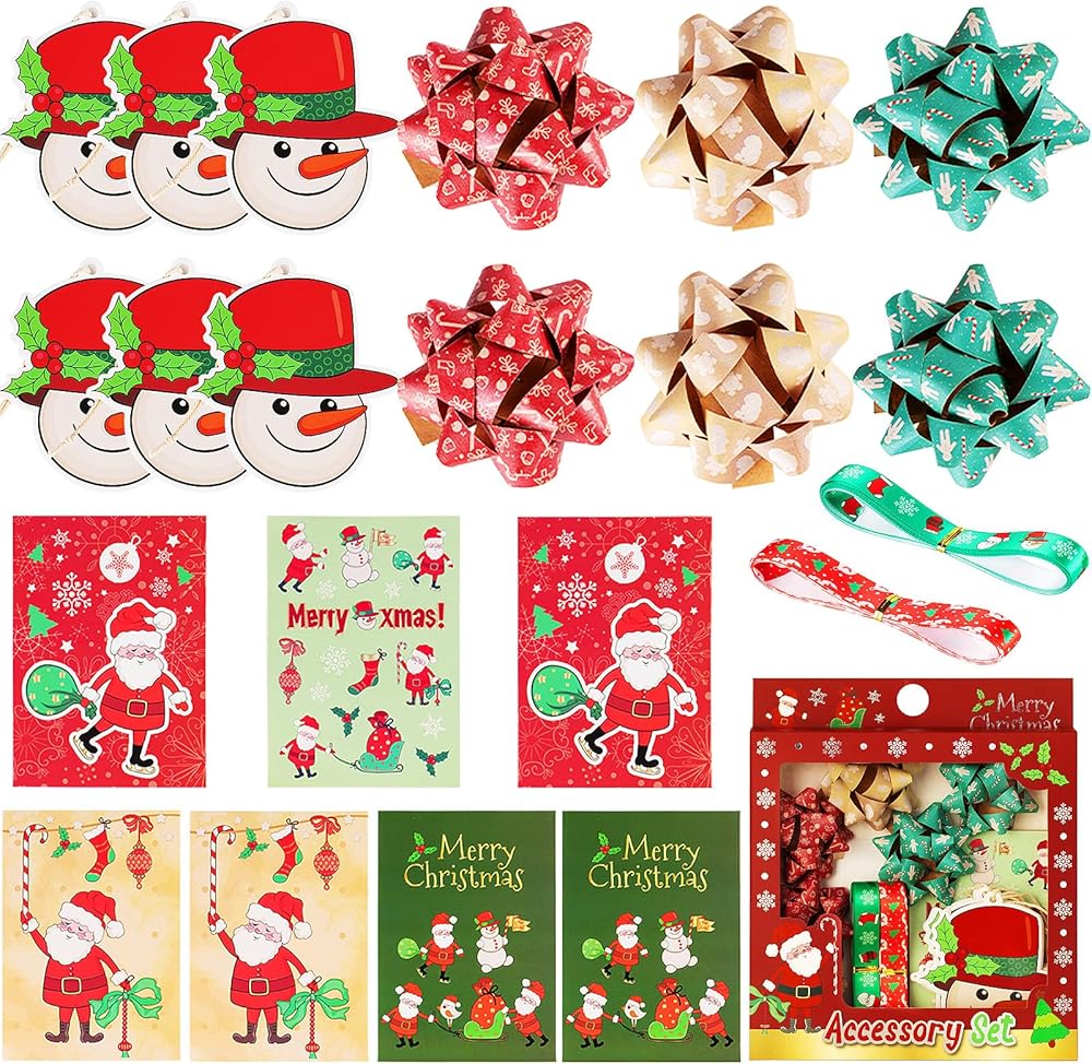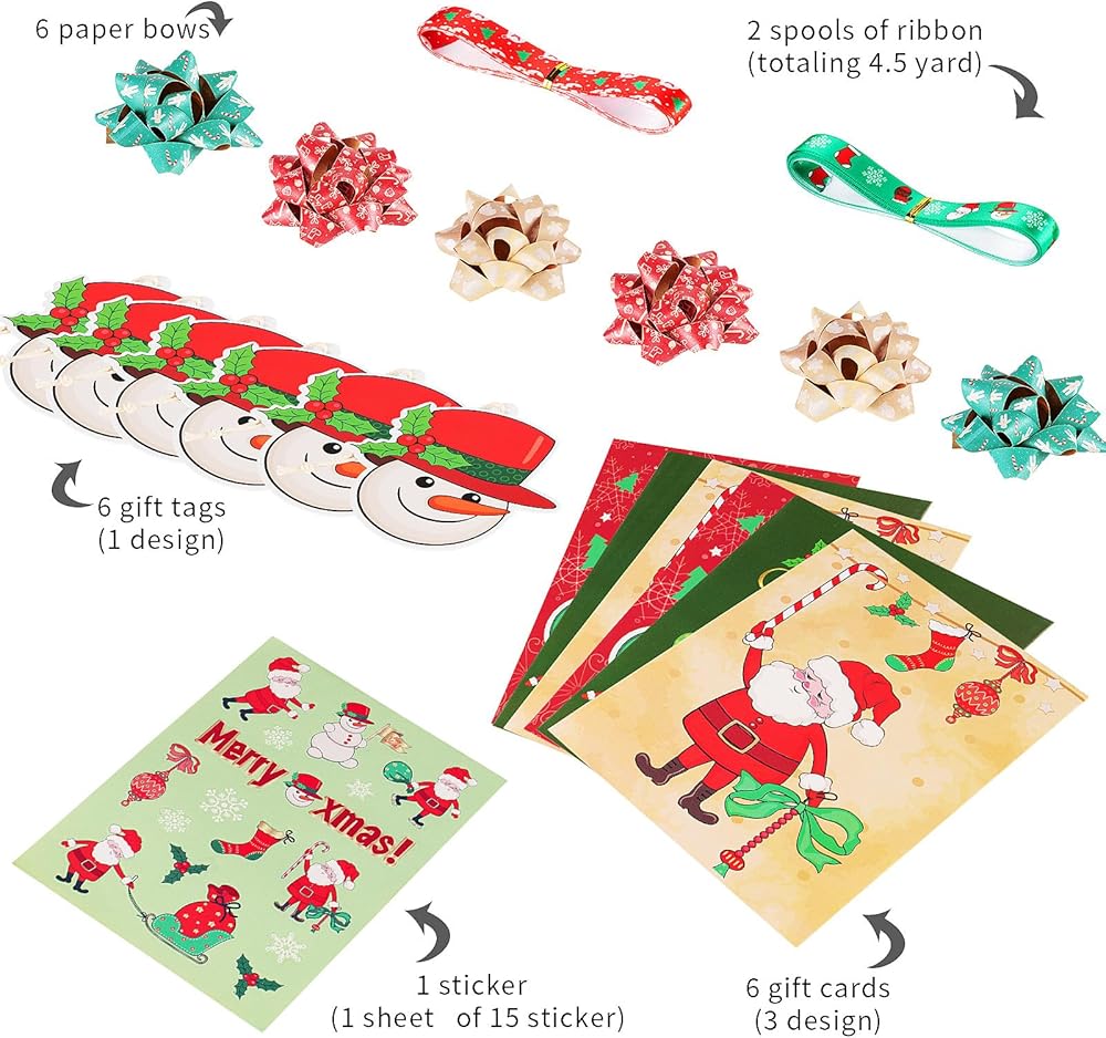 ALL-IN-ONE WRAP KIT - This variety pack includes 6 2.75" Christmas bows, 6 Christmas cards, 6 Christmas tags with string, 1 sticker and 2 rolls of 2.25yd ribbon (red, and green). This large variety pack is perfect for the Christmas gift wrapper!