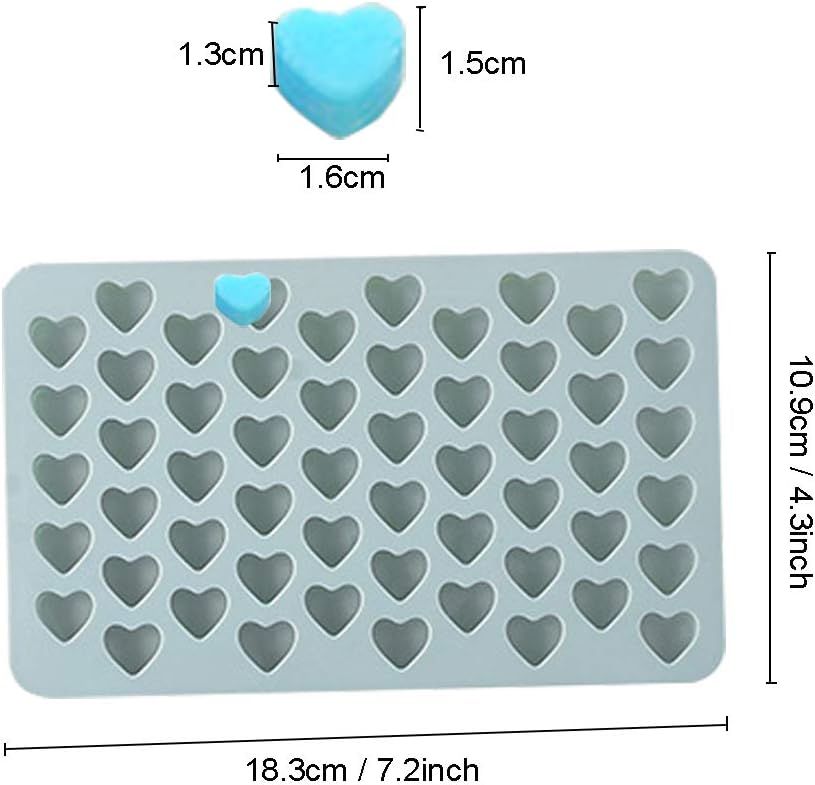 ◀ قالب سيليكون على شكل قلب صغير يحتوي على 55 تجاويف، الحجم الكامل: 18.3×10.9×1.5 سم/7.2×4.3×0.6 بوصة. حجم تجويف القلب الواحد: 1.5×1.6×1.3 سم.