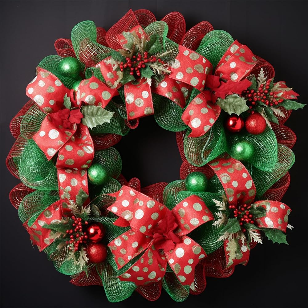 إكسسوارات زخرفية مثالية: يمكن استخدام شرائطنا الشبكية المزخرفة باللونين الأخضر والأحمر للزينة مثل أشجار عيد الميلاد، وأكاليل الزهور، وسلال الهدايا، وزجاجات النبيذ، والسور، والسلالم، والأقواس، وما إلى ذلك، مما يضيف جوًا احتفاليًا قويًا واحتفاليًا.