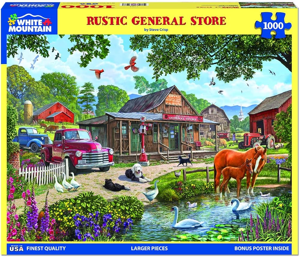 OLD FASHIONED PUZZLE: Bringing it back to the classic times of the wooden general store. Featured with farm animals & wild life down the country road.