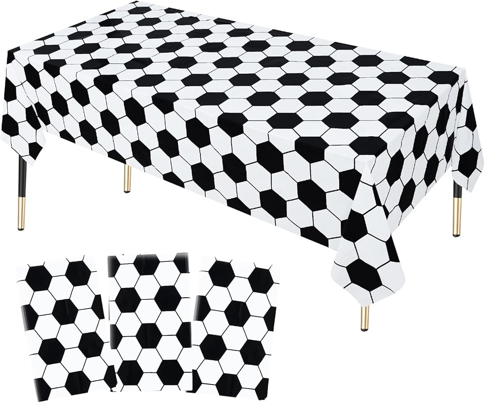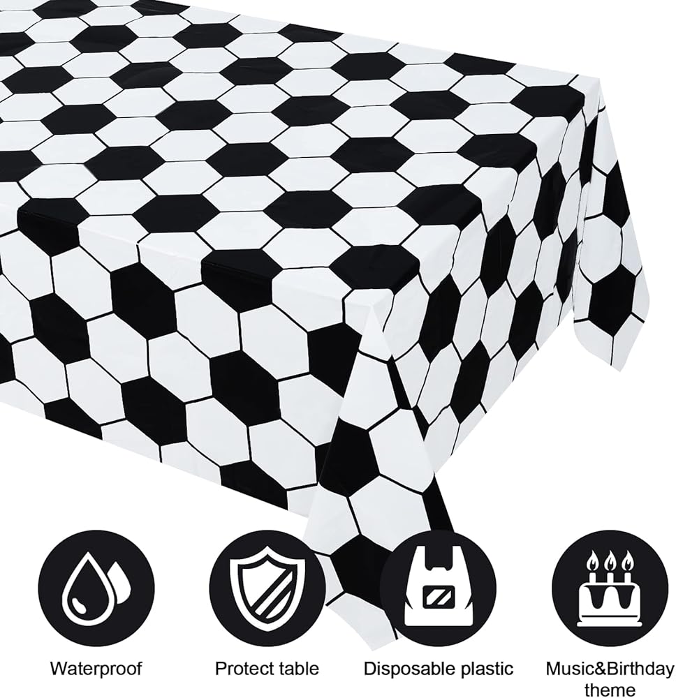 • تشمل العبوة: سوف تحصل على ثلاثة مفرش طاولة لحفلة كرة القدم، أغطية طاولة بلاستيكية بتصميم كرة القدم.