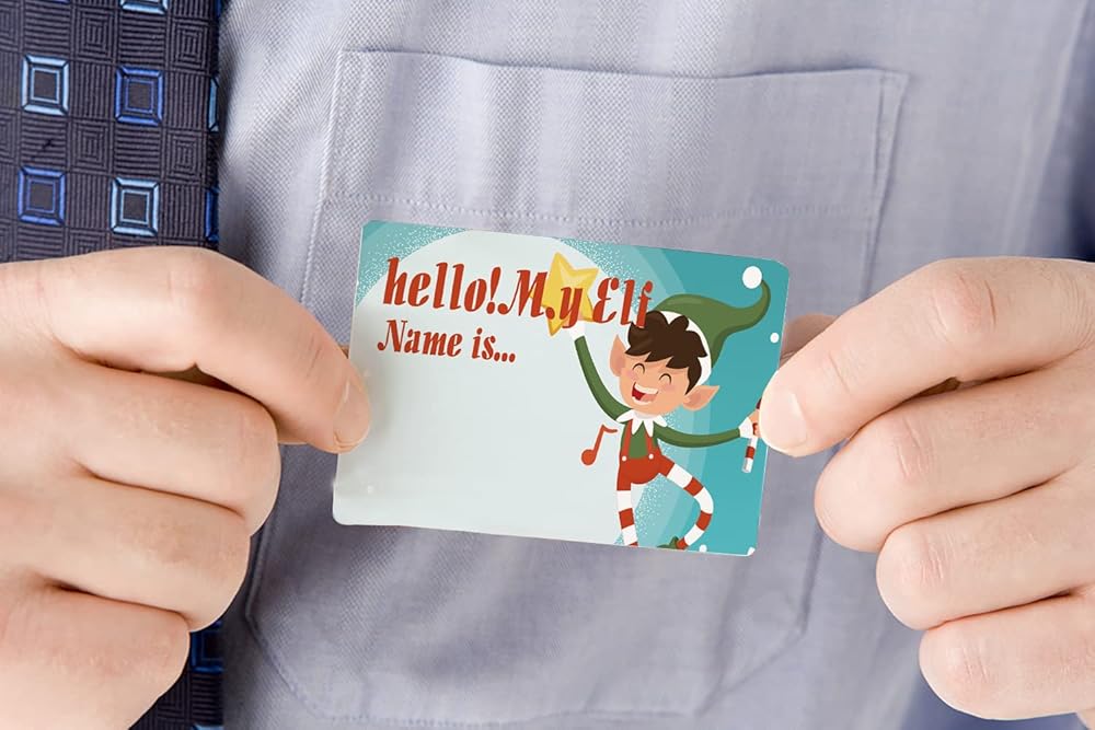 What's Your Elf Name Game، 1 علامة موضوع Elf و50 ملصقًا لبطاقة الاسم، ألعاب حفلات عيد الميلاد، لعبة عيد ميلاد للأطفال والكبار، لعبة نشاط للمكتب أو الفصل | JRKP048L