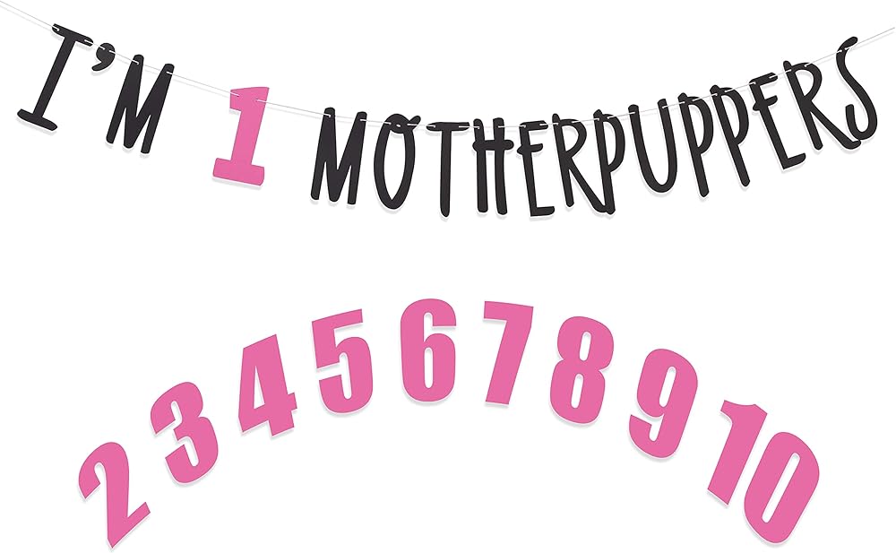 لافتة عيد ميلاد الأم - ديكورات حفلات تذكارية لعيد ميلاد الكلب، دعائم صور لعيد ميلاد الكلب، ديكور عيد ميلاد سعيد للكلاب، مجموعة مجانية من 0-9 أرقام، Lets Pawty (أسود وردي)