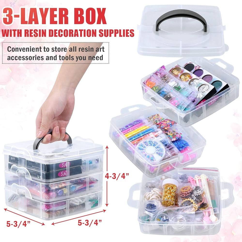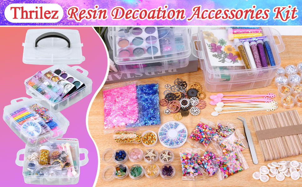 تحتوي مجموعة تزيين الراتنج ثريلز على معظم اللوازم والإكسسوارات التي تحتاجها أثناء صناعة الحرف اليدوية المصنوعة من الراتنج، مما يسمح لك بالحصول على المزيد من أفكار الحرف اليدوية، وفي الوقت نفسه، يتم تقديم صندوق تخزين من 3 طبقات، لذلك يمكن أن يساعدك على التخلص من الانزعاج الناتج عن فوضى الأدوات.