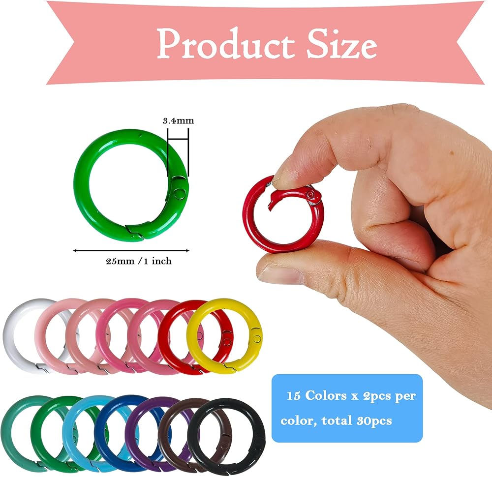 • 15 لونًا من الحلقات المعدنية على شكل حرف O - تحتوي العبوة على 30 قطعة من الحلقات المعدنية على شكل حرف O بقطر خارجي 25 ملم / 1 انش، وتأتي مع 15 لونًا، بما في ذلك الأسود والأبيض والوردي الفاتح والبينك الفاقع والأزرق الفاقع والأزرق الداكن والأخضر والأزرق السماوي والتركواز المتوسط والأحمر الوردي والأصفر والأرجواني والأحمر الداكن والبرتقالي والقهوة بما يكفي لتلبية احتياجاتك المختلفة.