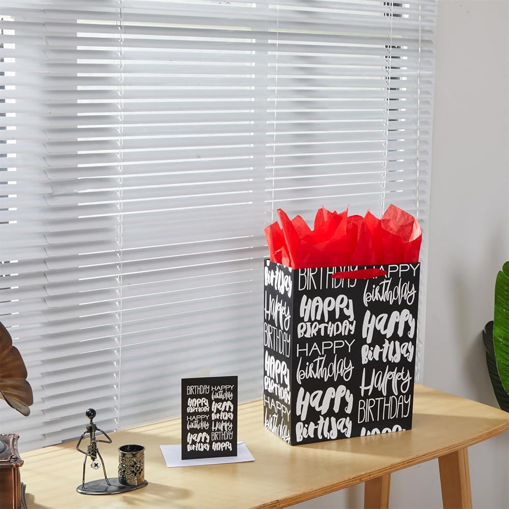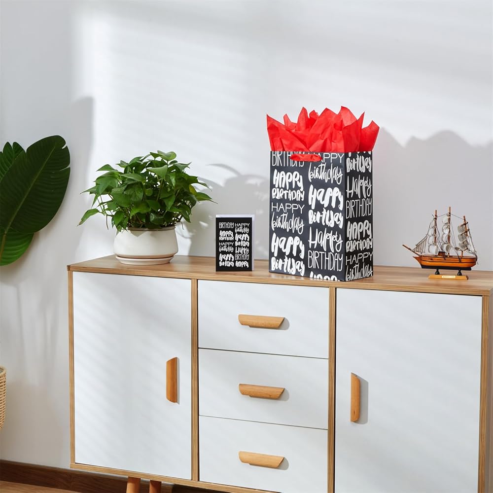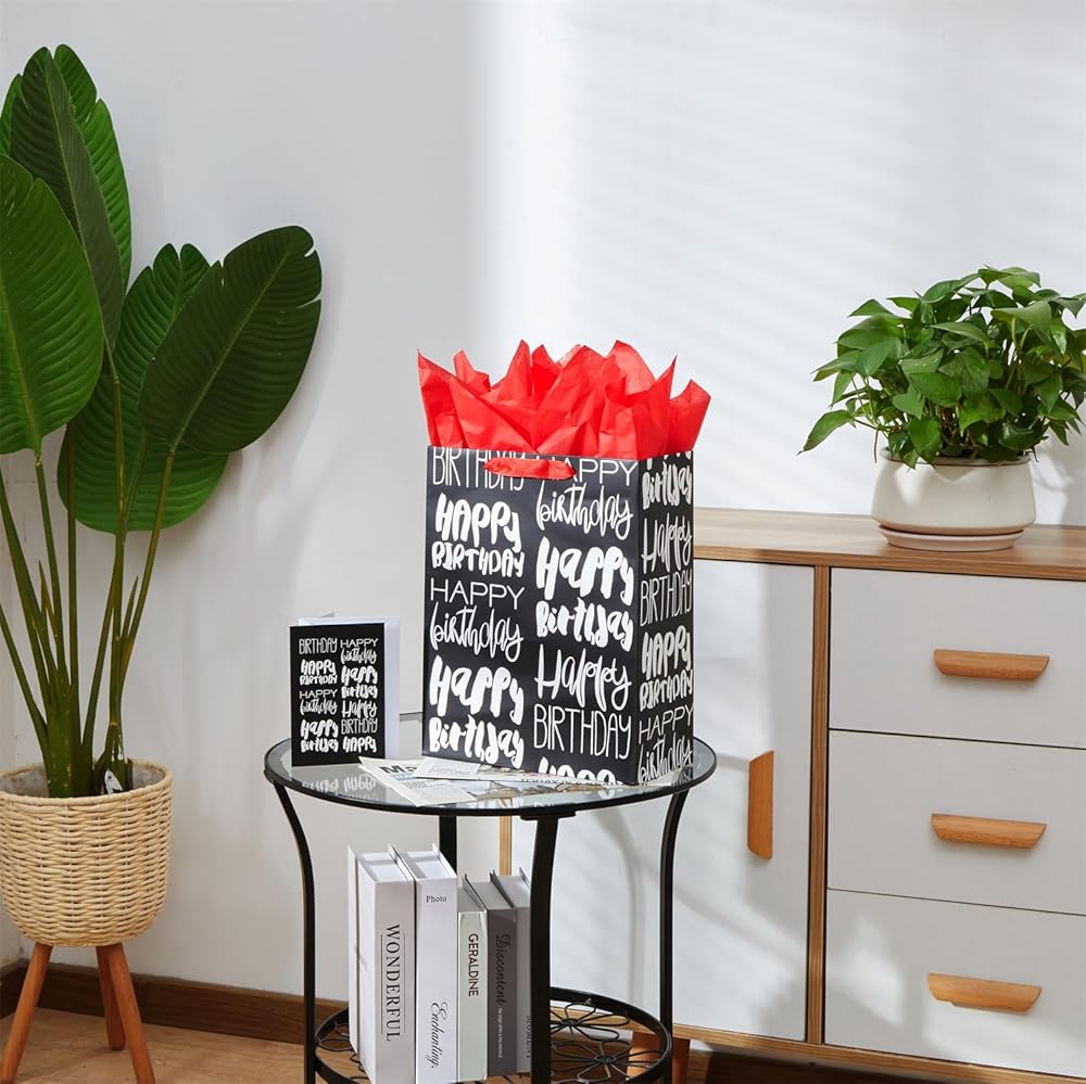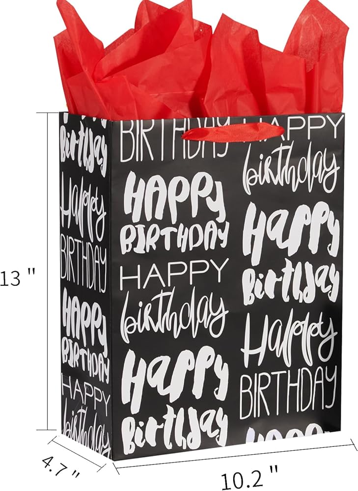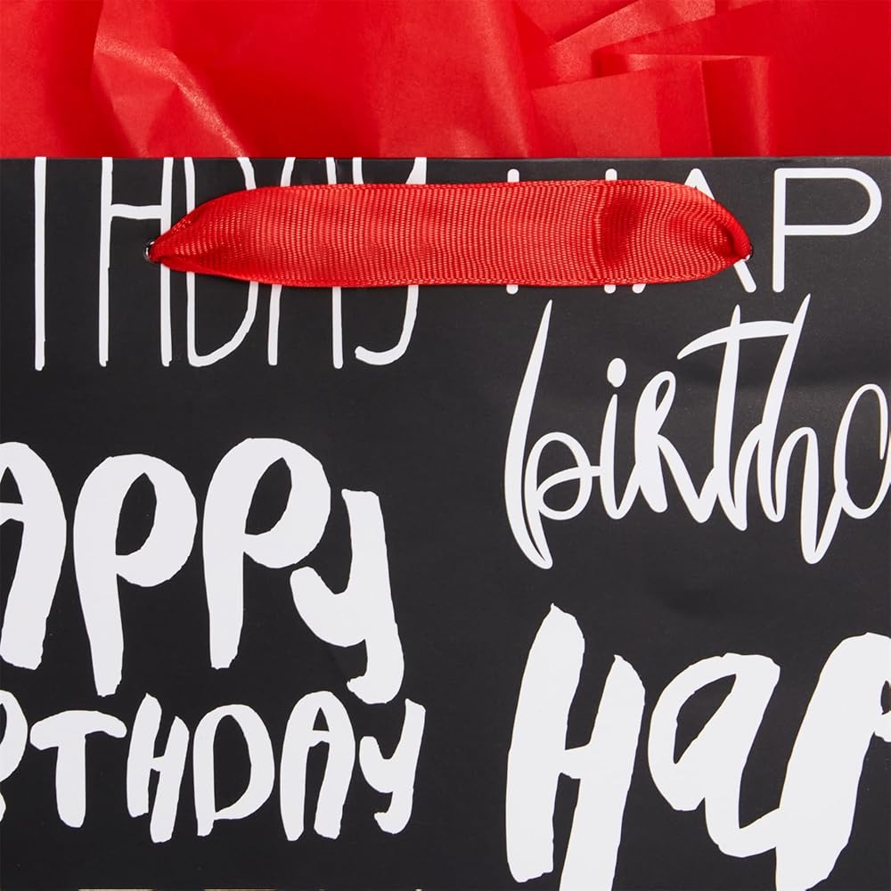 صان كولور حقيبة هدايا عيد ميلاد كبيرة سوداء مقاس 13 بوصة مع ورق مناديل حمراء (عيد ميلاد سعيد)