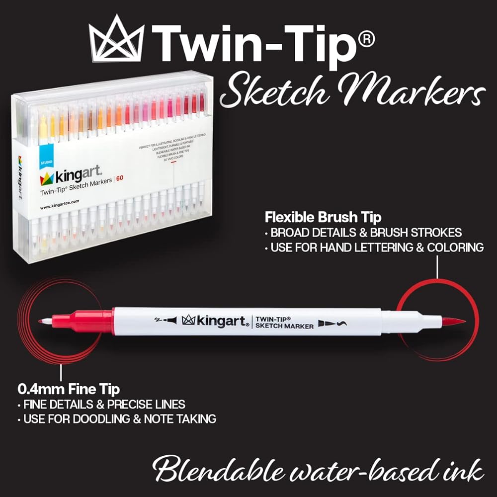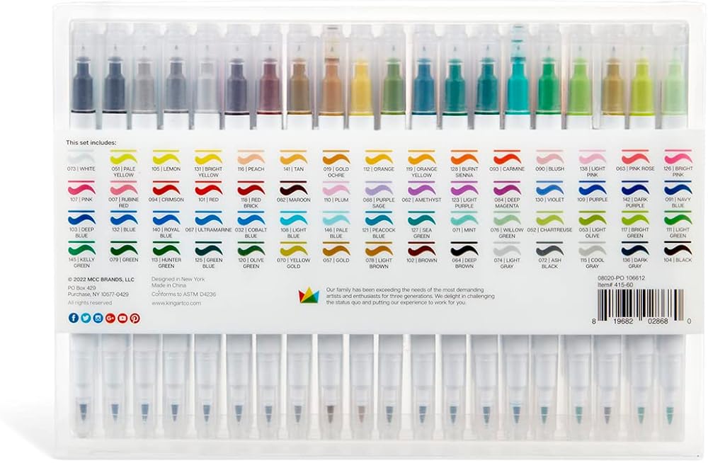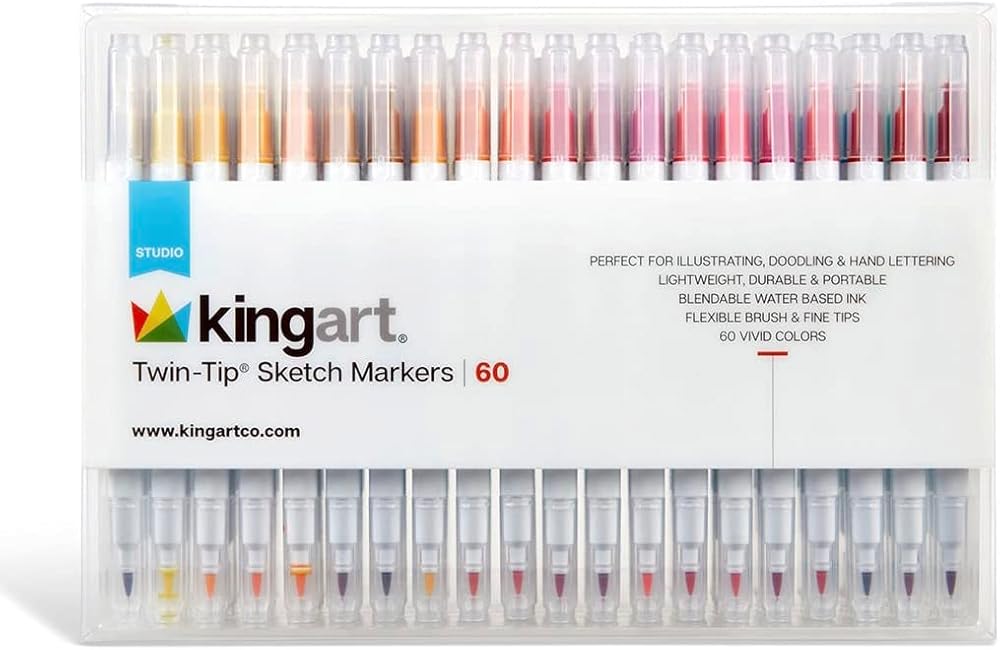 ابتكر عمل فني رائع بالألوان مع هذه المجموعة المكونة من 60 قلم رسم ستوديو توين تيب من كينجارت®. تأتي هذه المجموعة مع 60 قلم تحديد مزدوج الأطراف شديد الصبغة ويدوم طويلاً لجعل الإبداع سهلاً وممتعًا. سيكون الإبداع والتلوين والرسومات والكتابة شيئًا تتطلع إليه بالفعل. ابتكر تفاصيل دقيقة باستخدام طرف 0.4 ملم أو اقلب قلم التحديد لتطوير خطوط أكثر سمكًا باستخدام طرف الفرشاة. طرف الفرشاة المرن رائع للحصول على تفاصيل أكثر سمكًا وخطوات الفرشاة. كل قلم يحمل علامة واضحة باسم اللون والرقم، من أجل راحتك. اكتشف مجموعات ألوان لا حصر لها مع الحبر المائي القابل للمزج، داخل كل قلم رسم ستوديو توين تيب من كينجارت®. أداة الكتابة متعددة الاستخدامات هذه هي الأداة المثالية للخط والحروف اليدوية والخربشة وتدوين الملاحظات والتلوين. بفضل التصميم والتعبئة المدمجة والمحمولة، فإن أقلام التحديد ذات الطرف المزدوج الخاصة بنا خفيفة الوزن ومتينة ومثالية للإبداع أثناء التنقل. افعل كل شيء براحة وسهولة مع أقلام الرسم ستوديو توين تيب من كينجارت®. هذه المجموعة من أقلام التحديد ذات الأطراف المزدوجة تمثل هدية رائعة للفنانين والمبدعين من جميع الأعمار. انتقل من تلوين صفحات كتاب التلوين الخاص بك إلى إنشاء رسومات نابضة بالحياة مع هذه المجموعة متعددة الاستخدامات من أقلام التحديد. رائعة للفنون الجميلة والرسوم التوضيحية والخربش ودفتر اليوميات والحروف اليدوية والخط وأكثر من ذلك. يمكن تقديمها كهدية رائعة أيضًا! !