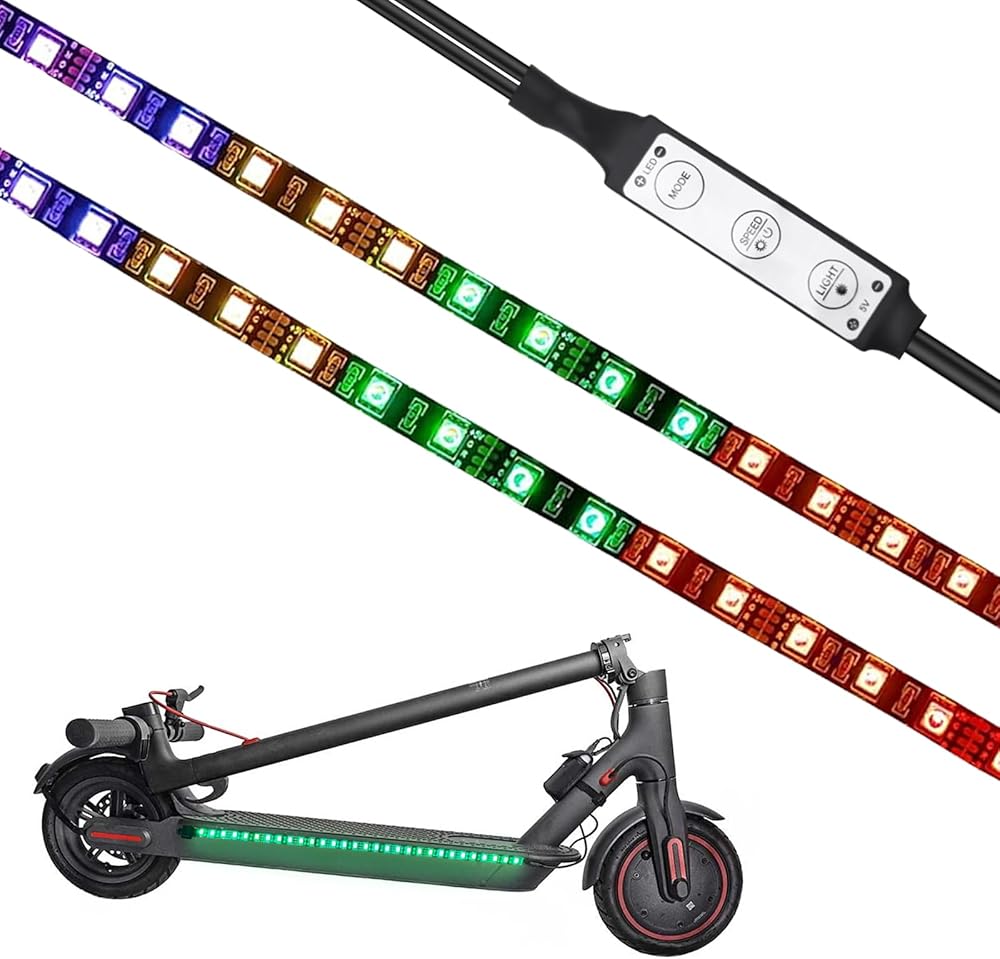 【ملون وجذاب】يدعم شريط الإضاءة الخاص بالسكوتر أوضاع فلاش متعددة وتغيير ألوان متعدد وتغطية منطقة امتصاص عالية.