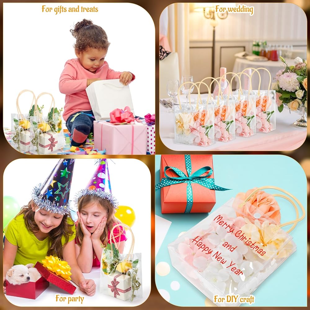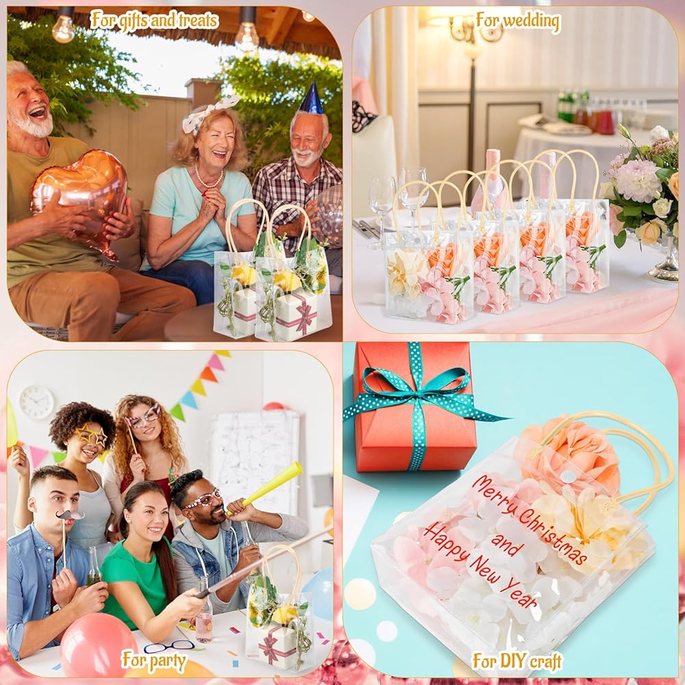 With both practicality and aesthetics, you can use our clear reusable bags for most festivity or celebration. Whether you're planning a special event or just need convenient storage for your small daily items, our bags offer various possibilities. Let these bags add charm to your important moments.