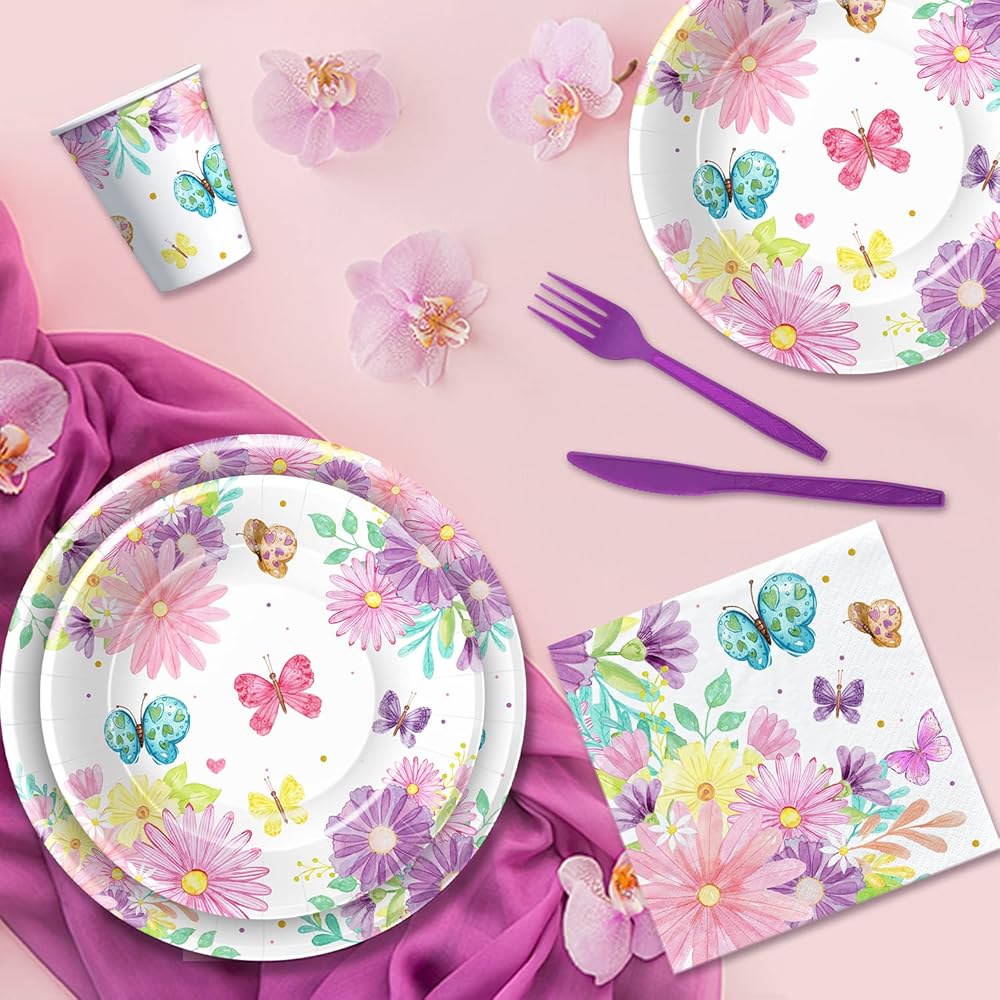 【Butterfly Decorations Girls】We carefully prepare for you to butterfly plates kit that features flying butterflies and watercolor flowers, which not only really adds layering to the party but also impresses your guests