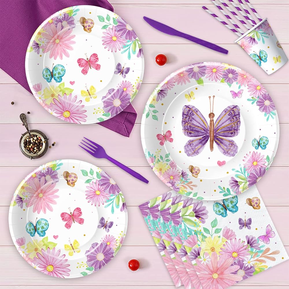 【Applicable Occasions】This butterfly birthday party supplies have original and unique designs, perfectly suitable for a girl's birthday party, baby showers parties, spring birthday parties, gender reveals party supplies, buffets, dinners, friends gatherings, and family gatherings