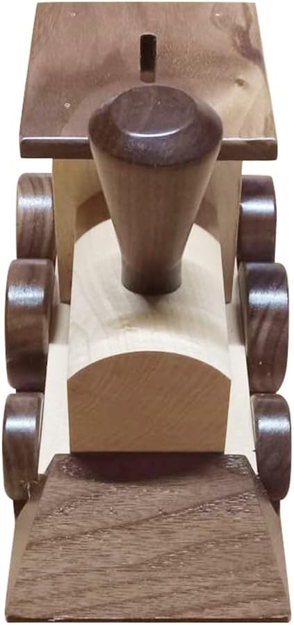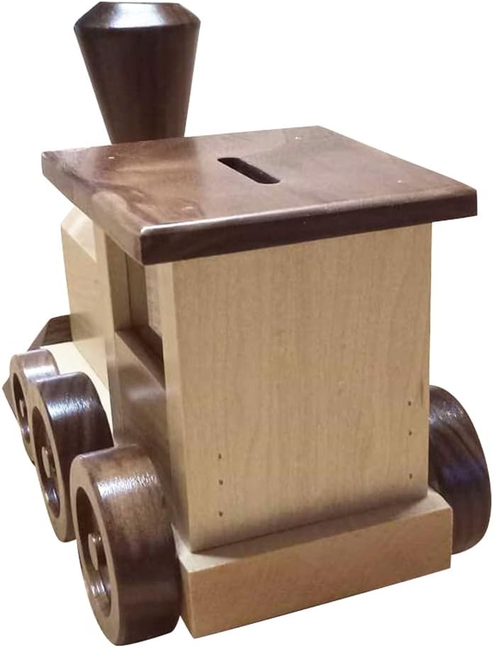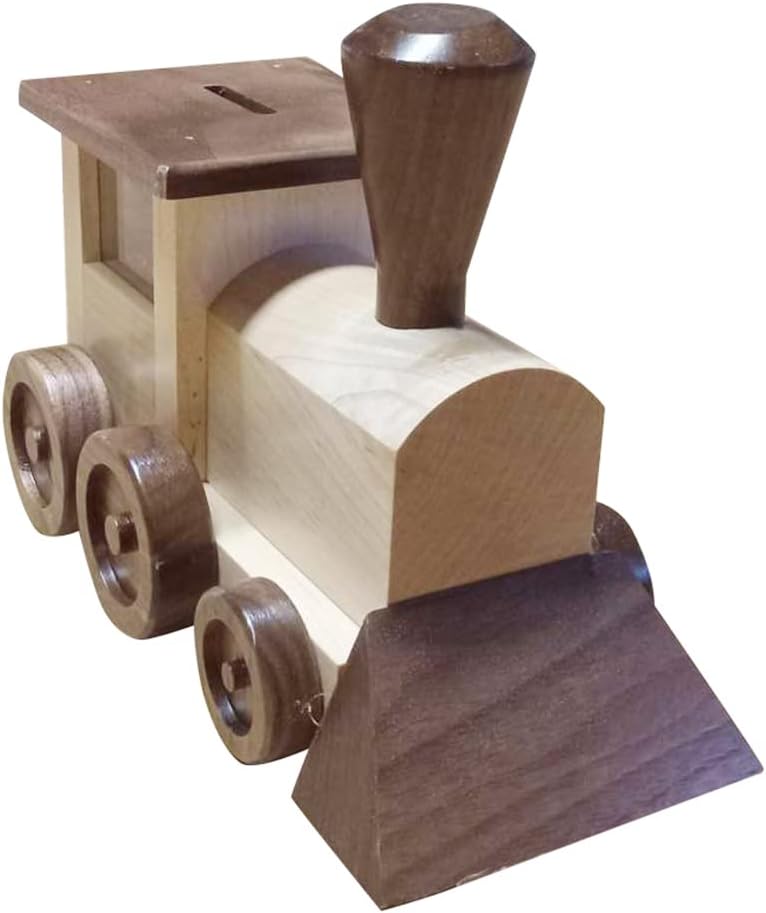 Introducing our classic Train Shaped Piggy Bank! This handmade bank is designed to look just like a real train, complete with authentic detailing. It's made in the USA from natural wood and finished with non-toxic paints that are safe for your little ones. Use this bank to teach your children the importance of saving and watch their savings add up as they make deposits through the slot at the top of the bank. It's also great as a decorative piece or conversation starter in any room. Real wooden material adds a touch of rustic charm and is built to last. Attractive train shape brings joy and helps children learn to save their coins. Indeed, a very cute money holder, perfect for collecting allowances, spare change, and special gifts! Get your Train Shaped Piggy Bank today and get ready to start counting your coins!