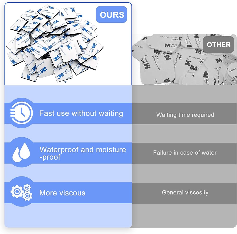 【سهلة التركيب】: يمكن قطع مربعات الشريط اللاصق ذات الوجهين هذه لتلبية احتياجاتك المختلفة. قم بإزالة الورقة الخلفية، ثم أمسك وضع التثبيت واضغط بقوة.