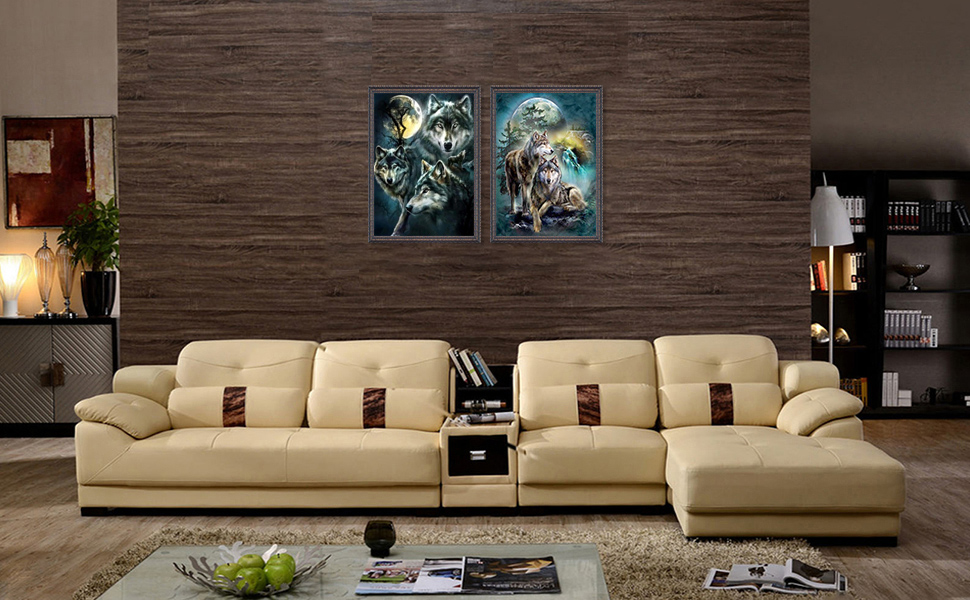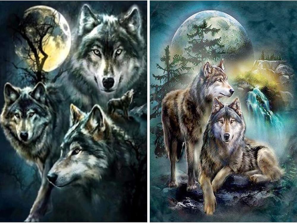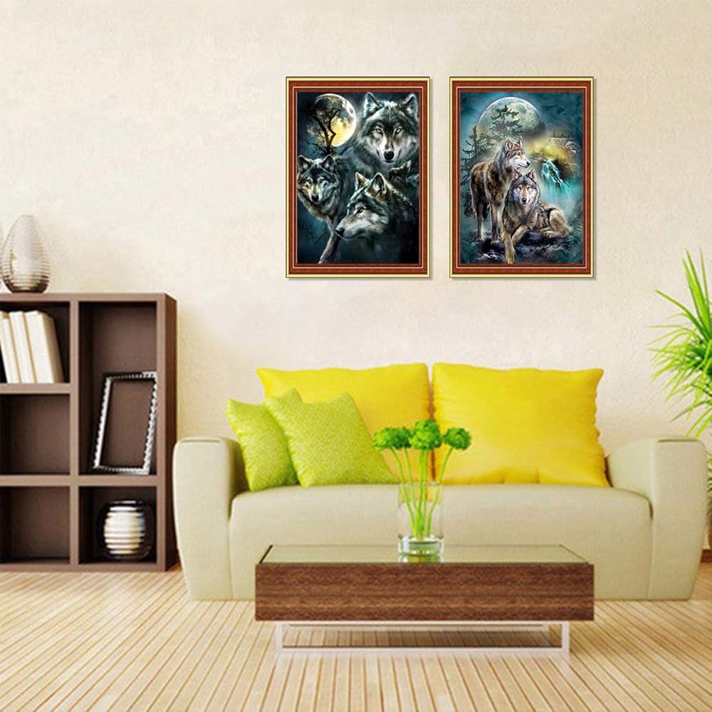 2 حزمة 5D الحفر الكامل الذئاب الماس اللوحة عدة، UNIME DIY الماس حجر الراين مجموعات الطلاء للبالغين والأطفال الماس الفنون الحرفية 12 × 16 بوصة (القمر والذئب مجموعات الطلاء الماس)