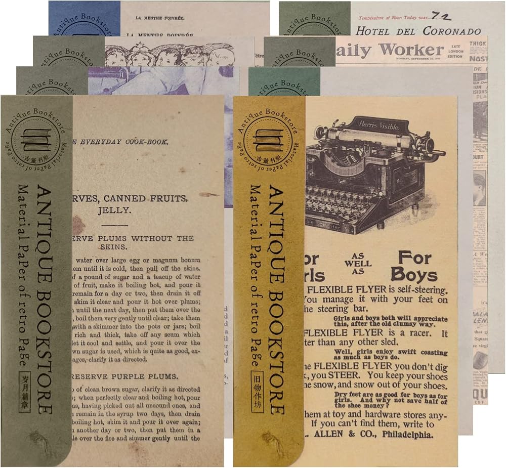 سحر عتيق - عبوة من 8 قطع من ورق سجل القصاصات العتيق ستعيدك في الوقت المناسب بتصميماتها الجميلة والفريدة من نوعها. تحتوي كل عبوة على 10 أنماط مختلفة، كل منها يحتوي على مادتين - ورق كرافت متين وورق خفيف الوزن. مع إجمالي 480 ورقة، لن ينفد إلهامك أبدًا!