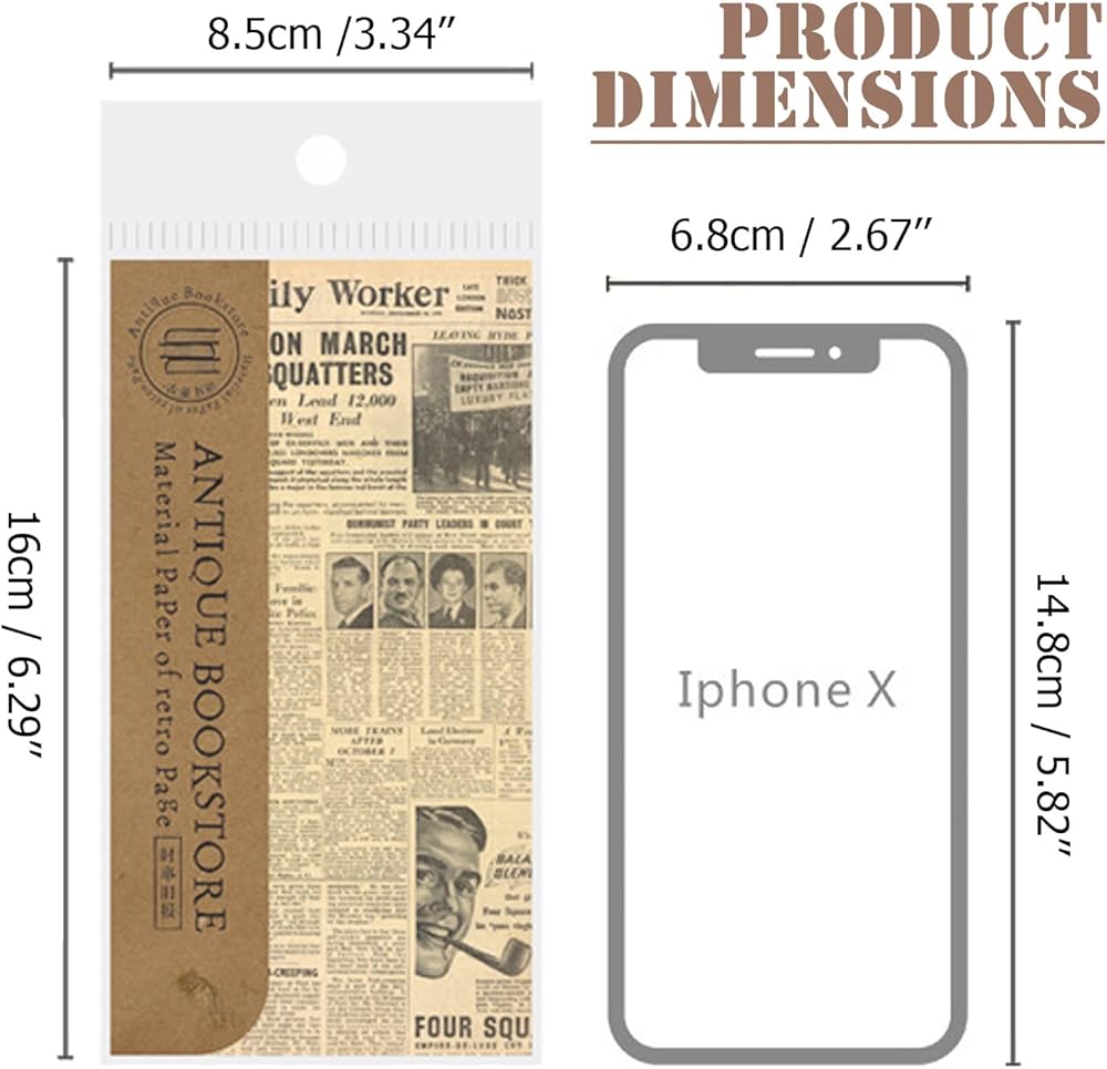 المقاس - يبلغ مقاس ورق المواد العتيقة 3.34 × 6.29 انش / 8.5 × 16 سم ويمكن قصه ليناسب احتياجاتك.